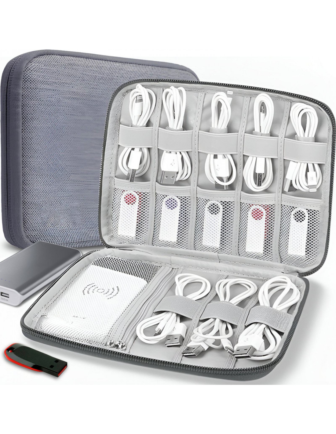 Šis kelioninis elektronikos organizatorius yra praktiškas dėklas laidams, įkrovikliams, išorinėms baterijoms, ausinėms, atminties kortelėms, diskams, telefonams ir kitiems smulkiems elektroniniams priedams laikyti. Pagamintas iš aukštos kokybės , vandeniui atsparios medžiagos , jis apsaugo jūsų įrenginius nuo drėgmės ir pažeidimų. Patogus ir lengvas, su užtrauktuku ir patogia nešiojimo rankena, idealiai tinka naudoti namuose ir kelyje.