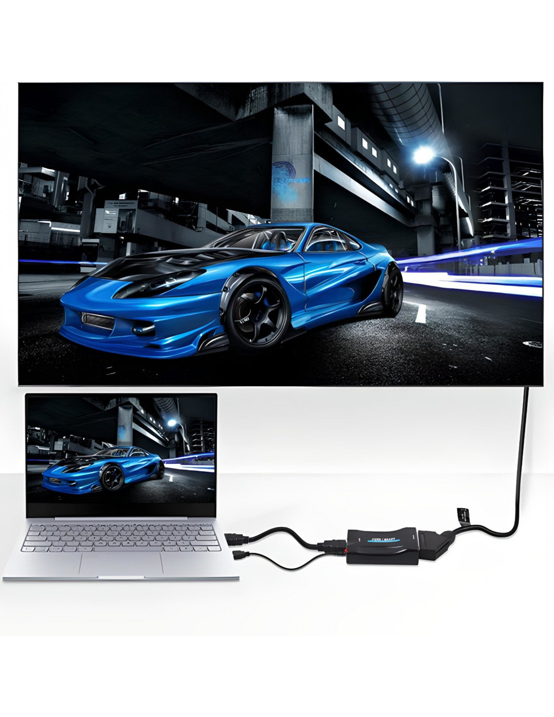 SCART į HDMI adapteris yra praktiškas sprendimas analoginiams SCART signalams konvertuoti į skaitmeninius HDMI. Tai leidžia lengvai prijungti senesnius įrenginius, pvz., priedėlius, vaizdo grotuvus ir žaidimų konsoles, prie modernių televizorių ir projektorių, turinčių HDMI prievadą. Adapteris palaiko 720p ir 1080p signalus, veikia pagal „plug-and-play“ principą be papildomos programinės įrangos diegimo ir užtikrina aukštos kokybės vaizdą ir garsą. Dėl lengvo ir kompaktiško dizaino jį patogu naudoti namuose ir kelyje.