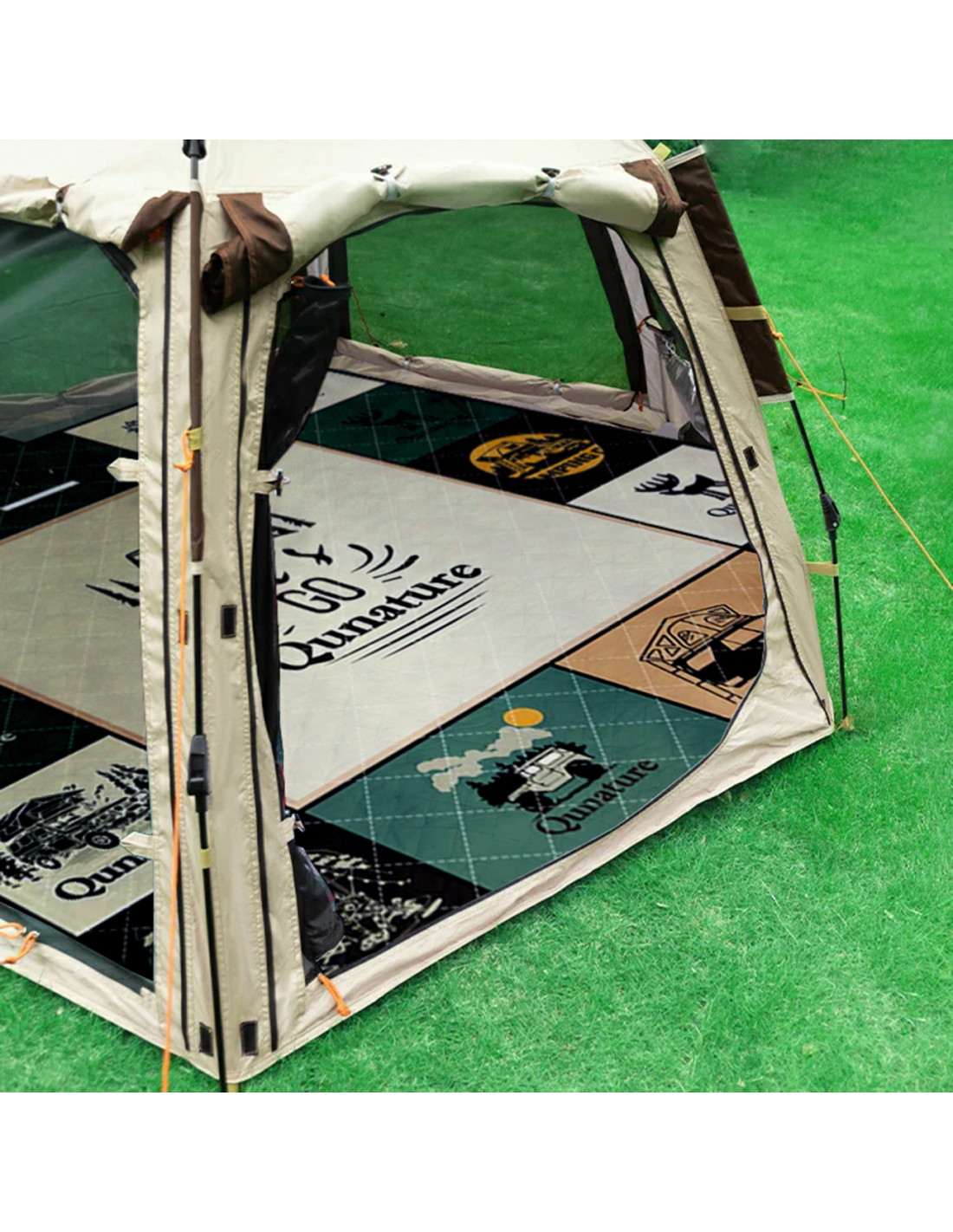 „Qunature“ pikniko kilimėlis užtikrins komfortą ir funkcionalumą žygių, stovyklavimo ar poilsio gamtoje metu. Didelis 200 x 200 cm dydis užtikrina patogų poilsį iki 6–8 žmonių, o ant jo patogiai gulės keturi. Pagamintas iš vandeniui atsparios „Pongee“ medžiagos ir aliuminio sluoksnio , kilimėlis efektyviai izoliuoja nuo drėgmės ir šalčio, suteikdamas šilumą ir komfortą bet kokiomis sąlygomis. Lengvas dizainas (tik 900 g) ir kompaktiški sulankstyti matmenys (apie 30 x 15 x 17 cm) leidžia jį neįtikėtinai lengvai nešioti ir laikyti. Platus nešiojimo dirželis palengvina transportavimą, o patvarūs „Velcro“ užsegimai ir kruopšti apdaila užtikrina gaminio ilgaamžiškumą.