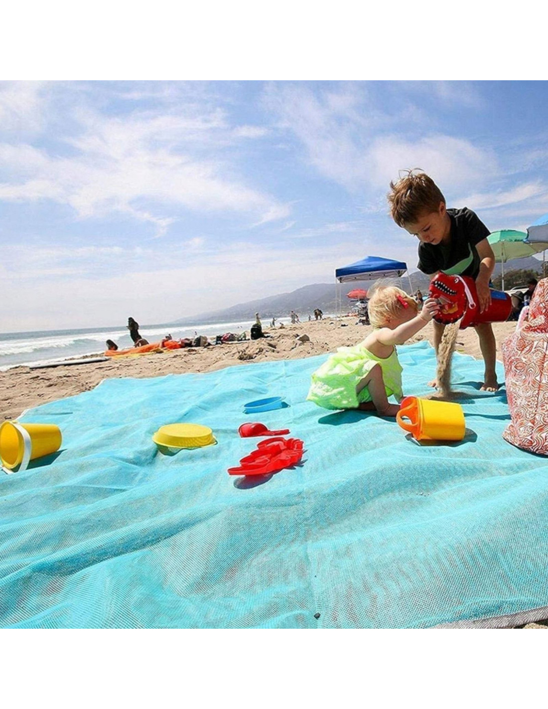 Šis 200 x 200 cm paplūdimio kilimėlis pagamintas naudojant dvigubo tinklelio technologiją, kuri efektyviai praleidžia smėlį ir vandenį, todėl jį lengva valyti. Jis lengvas, patvarus ir kompaktiškai susilanksto, todėl puikiai tinka kelionėms. Kilimėlis turi sustiprintus kraštus ir metalinius O formos žiedus kampuose, kad jį būtų galima pritvirtinti prie žemės. Šis praktiškas sprendimas puikiai tinka paplūdimiui, iškylai ar stovyklavimui, užtikrinant komfortą visai šeimai.
