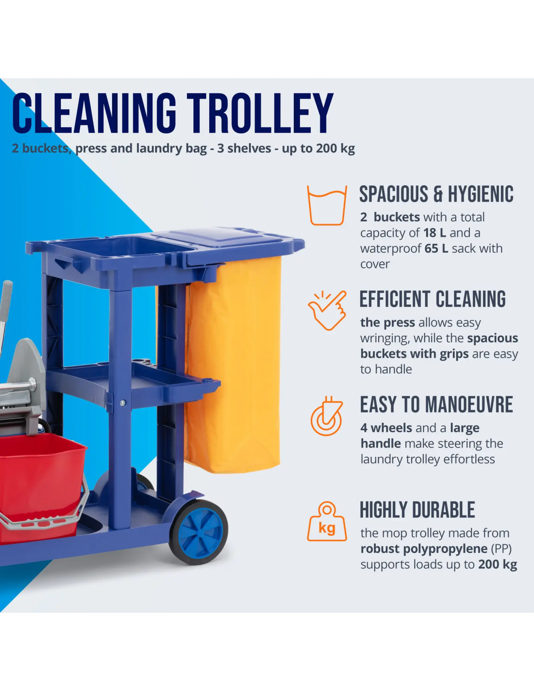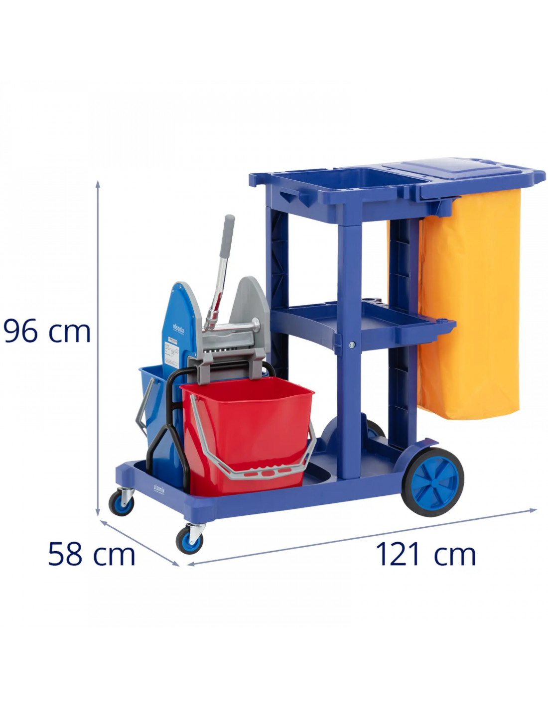 Grindų plovimo vežimėlis su 2 kibirais, gręžtuvu, skalbinių maišu, 3 lentynomis, 18 l