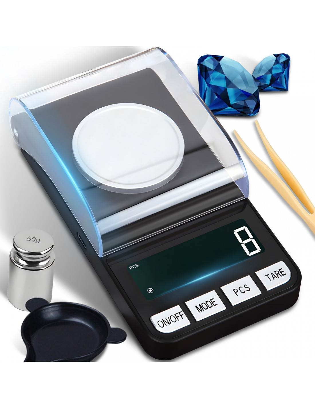 Nešiojamos elektroninės papuošalų svarstyklės, maitinamos baterijomis, 0,001–20 g / 0,001 g