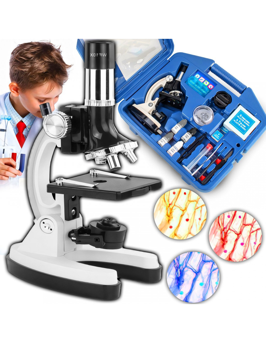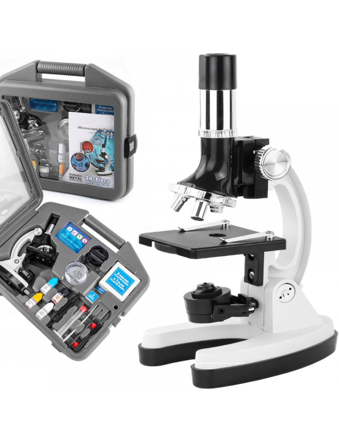Optinis mikroskopas su 300/ 600/ 1200 kartų didinimu, apšvietimu ir priedais – rinkinys