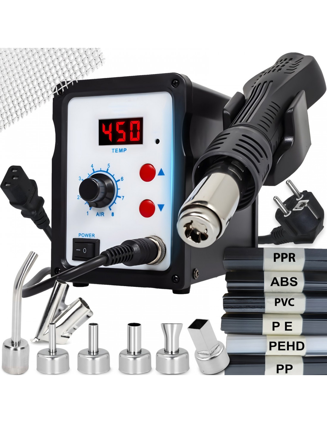 RETOO ER1208 karšto oro litavimo stotelė yra galingas ir tikslus 800 W įrenginys, skirtas elektroninių komponentų litavimui, plastiko suvirinimui ir kitiems dirbtuvių darbams atlikti. Įrengtas bešepetėlinis variklis, keraminis kaitinimo elementas, jutiklis lygintuvo stove ir LED ekranas užtikrina patogų ir saugų darbą. Dėl sklandaus temperatūros ir oro srauto reguliavimo stotelė leidžia tiksliai reguliuoti parametrus pagal medžiagos tipą. Šis modelis idealiai tinka elektronikos, automobilių ir „pasidaryk pats“ reikmėms.