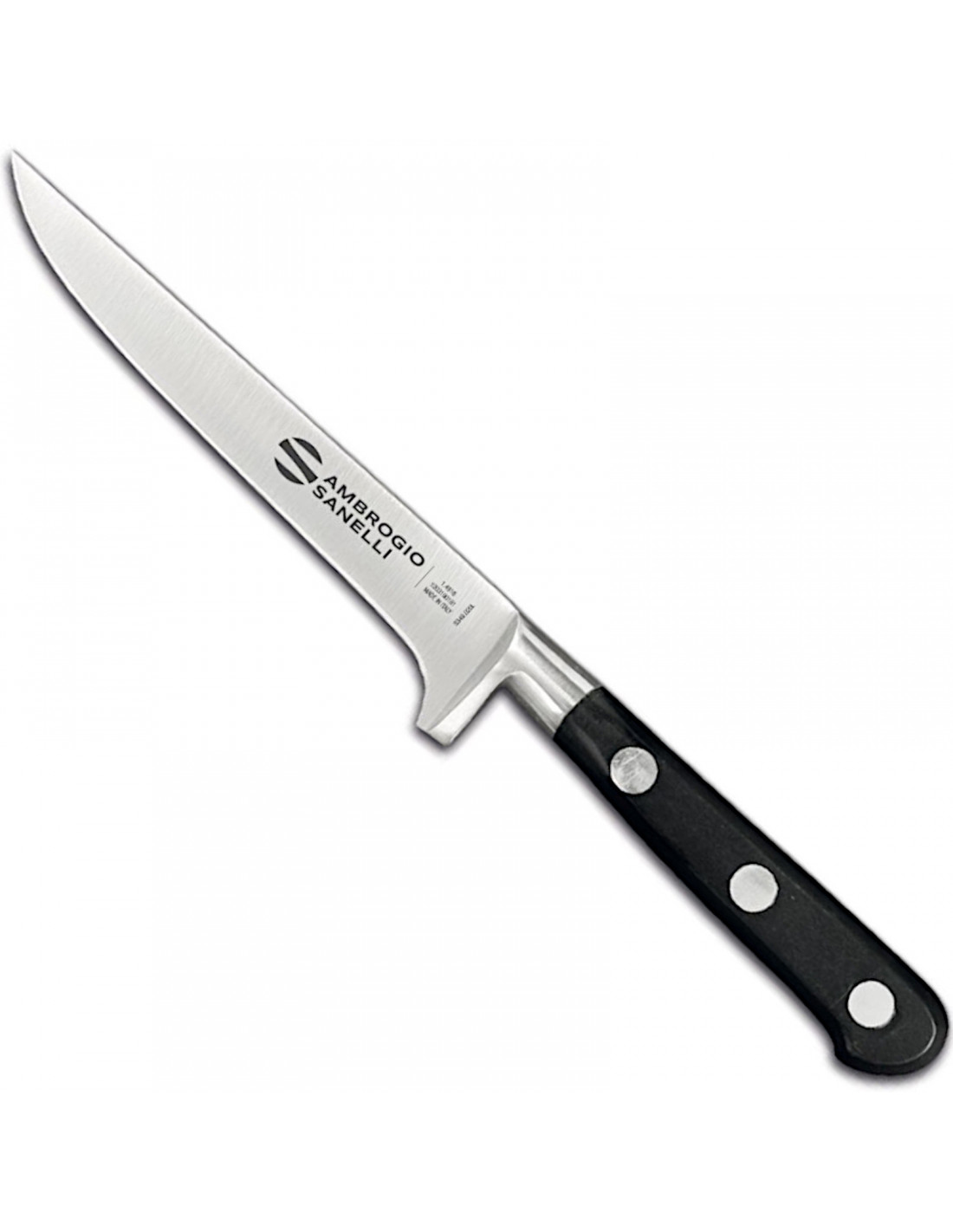 „Ambrogio Sanelli Chef“ peilių linijoje derinamos tradicijos ir pažangiausios technologijos. Ašmenys kalti iš vientiso aukštos kokybės nerūdijančio plieno gabalo , kiekvienas kruopščiai apdirbtas ir patikrintas. Jie pasižymi aukšta kokybe, pjovimo galia ir atsparumu korozijai. Visapusiškas ašmenų įpjovimas išlaiko pusiausvyrą ir užtikrina ilgalaikį patvarumą. Šis peilis puikiai tinka mėsai pjaustyti.