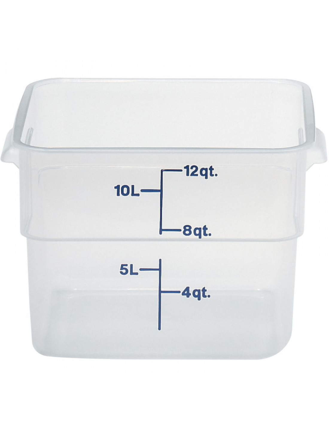 Skaidrus polipropileno maisto konteineris „Cambro“ „CamSquarereg“ puikiai tinka įvairiems maisto produktams laikyti ir virtuvei sutvarkyti. Dėl didelio atsparumo karščiui jis tinka naudoti šaldymo spintelėse.