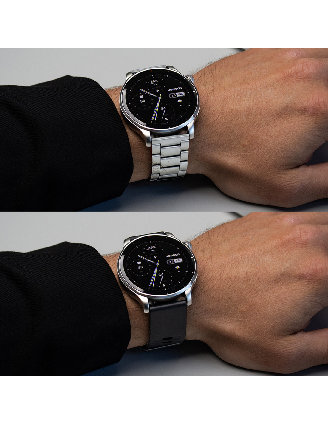 „Joyroom Venture Series JR-FV1“ išmanusis laikrodis ne tik seka jūsų aktyvumą, bet ir leidžia atsiliepti į skambučius tiesiai nuo riešo. 1,43 colio AMOLED ekranas su 466x466 pikselių raiška užtikrina krištolo skaidrumo vaizdą, o iki 20 dienų veikianti baterija reiškia, kad jums nereikia rūpintis dažnu įkrovimu. Be to, daugiau nei 100 sporto režimų pasirinkimas užtikrina jūsų sveikatą ir komfortą.