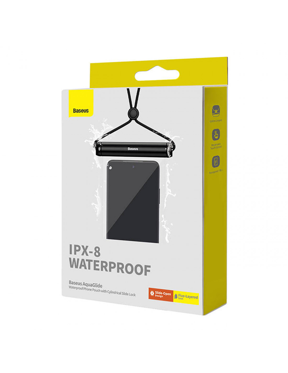 „Baseus AquaGlide“ dėklą uždaryti ir atidaryti greita ir paprasta dėl pasukimo mechanizmo ir slankiojančios sagties. Cilindrinė sagtis užtikrina geresnį sandarumą, sumažindama atsitiktinio atidarymo riziką. Ši sistema užtikrina, kad jūsų telefonas išliktų sausas net ir pačiomis atšiauriausiomis sąlygomis. Tai reiškia, kad galite sutelkti dėmesį į pramogas ir atsipalaidavimą.