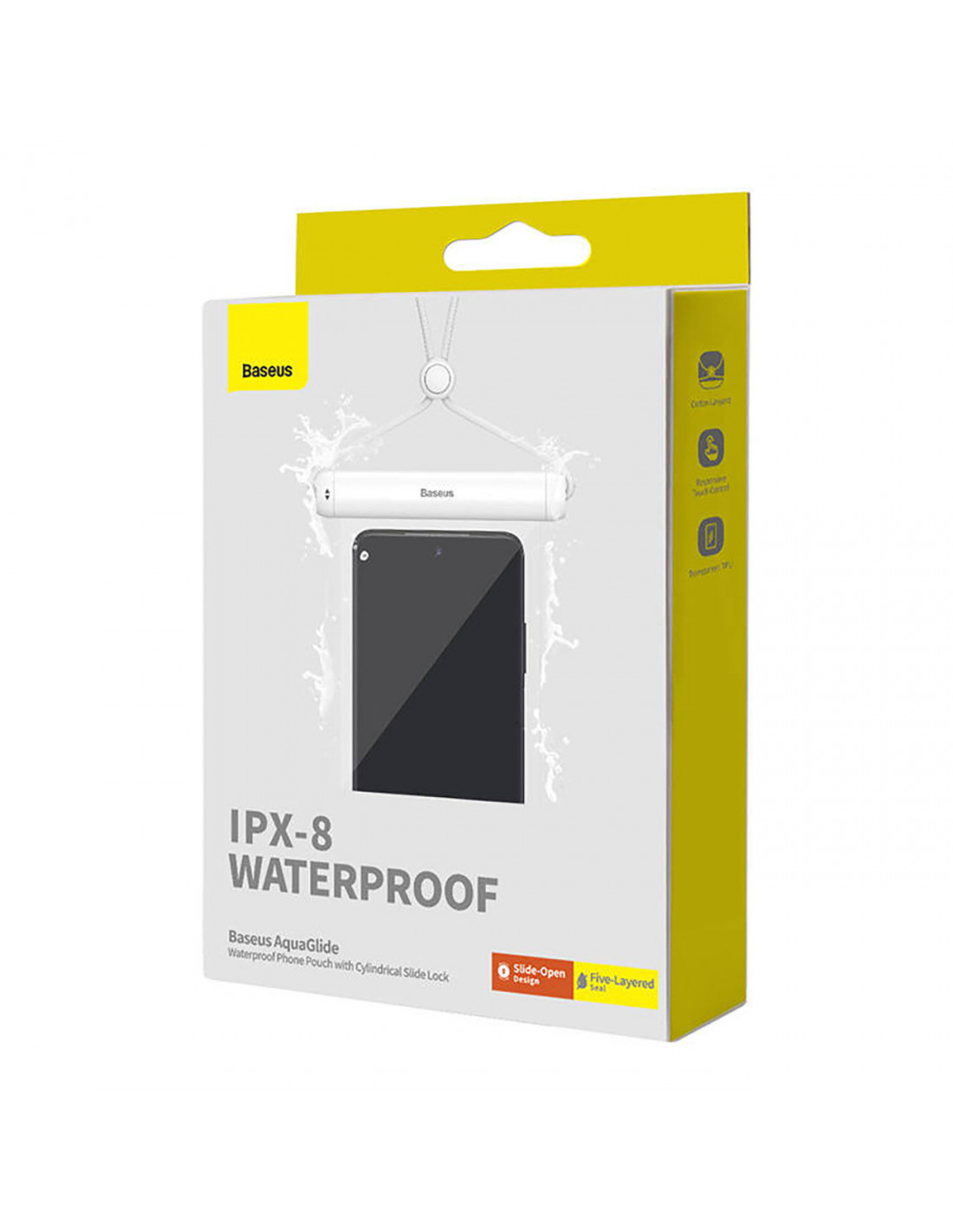 „Baseus AquaGlide“ dėklą uždaryti ir atidaryti greita ir paprasta dėl pasukimo mechanizmo ir slankiojančios sagties. Cilindrinė sagtis užtikrina geresnį sandarumą, sumažindama atsitiktinio atidarymo riziką. Ši sistema užtikrina, kad jūsų telefonas išliktų sausas net ir pačiomis atšiauriausiomis sąlygomis. Tai reiškia, kad galite sutelkti dėmesį į pramogas ir atsipalaidavimą.