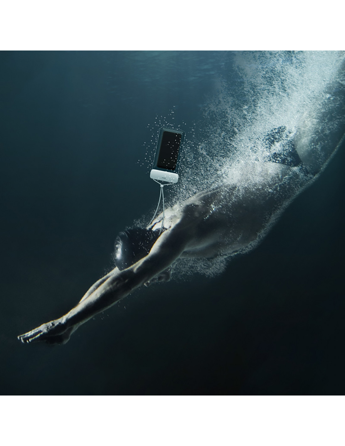 Dėklas turi ergonomišką kaklo dirželį, kuris sumažina spaudimą ir apsaugo nuo diskomforto. Platus atramos paviršius leidžia patogiai nešioti dėklą ilgą laiką, o tvirta konstrukcija užtikrina saugumą bet kokių vandens nuotykių metu.