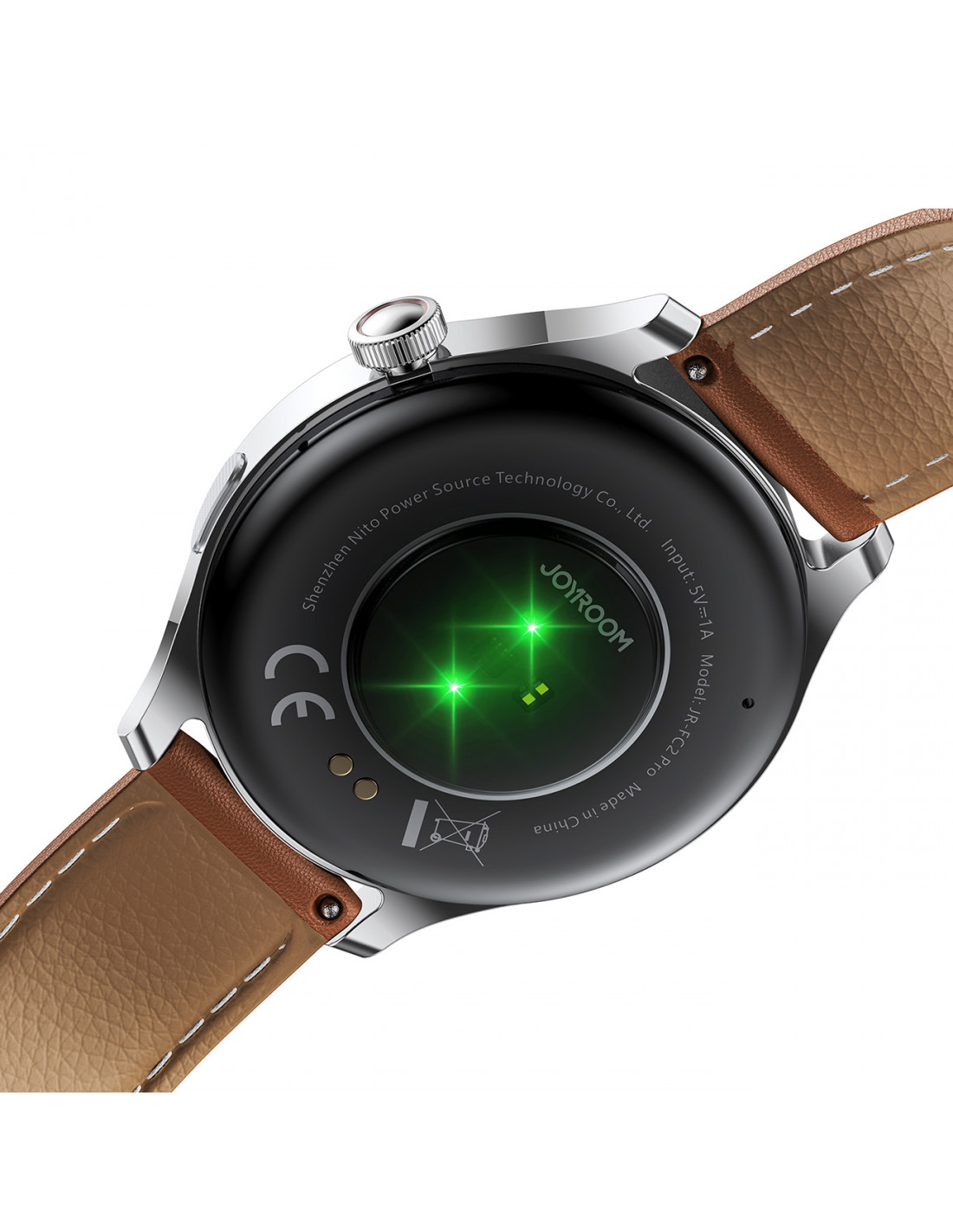 „Joyroom Classic Series JR-FC2 Pro“ išmanusis laikrodis pasižymi dideliu, ryškiu 1,46 colio HD ekranu, išskirtiniu įskaitomumu ir moderniu dizainu. „Bluetooth“ skambinimas leidžia skambinti neišsitraukiant telefono iš kišenės. Turėdamas daugiau nei 100 laikrodžio ciferblatų, 10 m ATM atsparumą vandeniui ir itin ilgą baterijos veikimo laiką, „JR-FC2 Pro“ prisitaiko prie jūsų gyvenimo būdo. Visą parą veikiantis sveikatos stebėjimas, įskaitant širdies ritmą ir deguonies kiekį kraujyje, padeda gyventi aktyvų ir sąmoningą gyvenimą. Pridedami dirželiai: elegantiška ruda oda ir praktiškas silikonas, todėl įrenginys puikiai tinka bet kokiai progai.