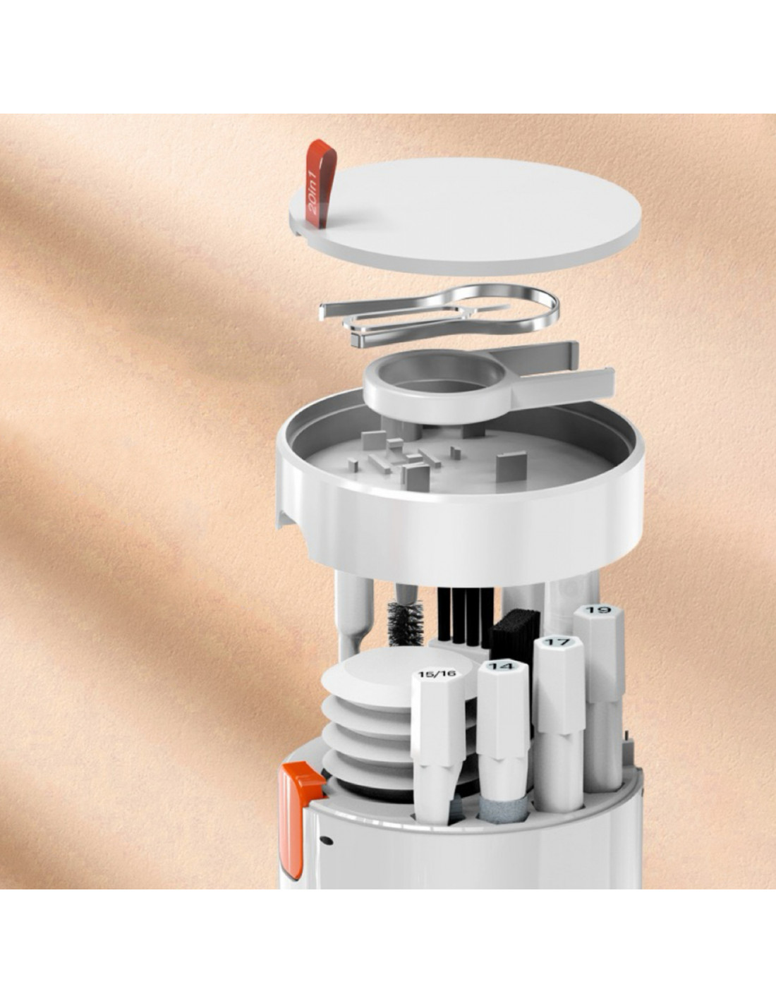 20 viename valymo rinkinyje yra 20 skirtingų įrankių, skirtų visapusiškai įrenginio priežiūrai. Jame yra ekranų, klaviatūrų ir ausinių valymo priemonių, užtikrinančių efektyvumą kiekvienoje situacijoje. Nesvarbu, ar jums reikia kruopščiai pašalinti dulkes nuo klavišų, ar švelniai nuvalyti ekraną, šiame rinkinyje yra viskas, ko jums reikia.