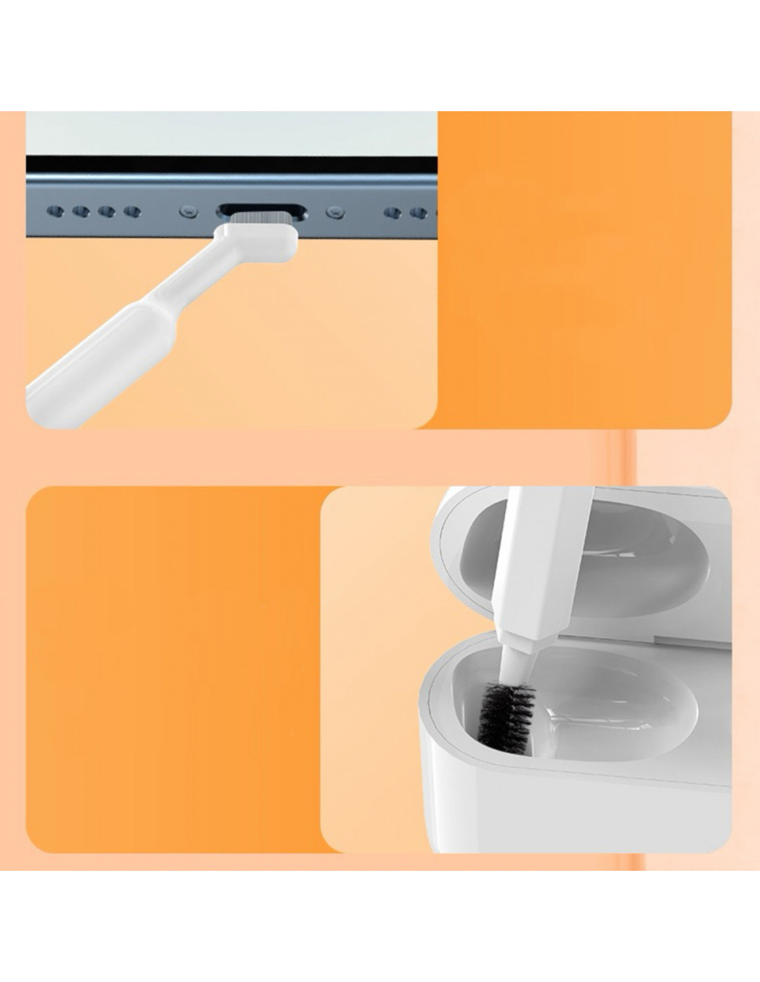 - - Pasiekite visur : specialiai sukurti valymo elementai puikiai tinka sunkiai pasiekiamoms vietoms, tokioms kaip plyšiai ir įdubimai tarp klavišų ar ausinių viduje.
