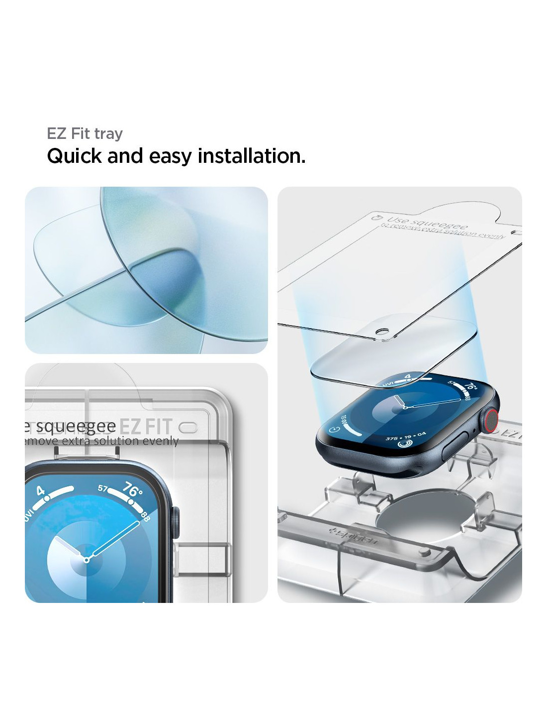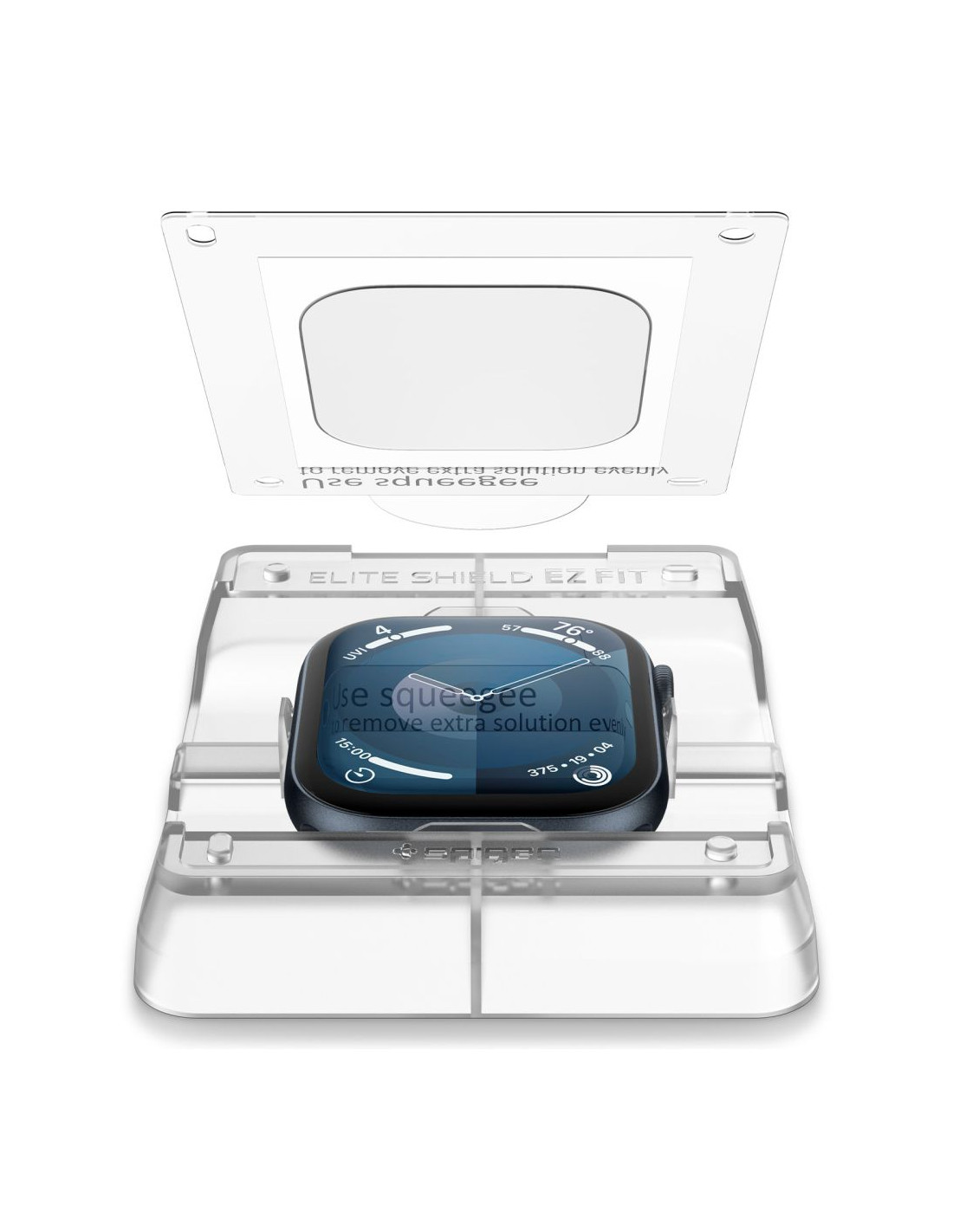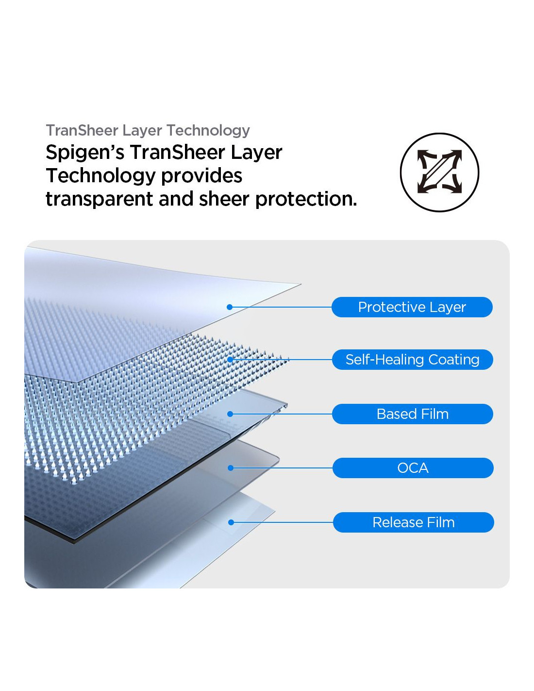 „Spigen“ „Elite Shield“ apsauginė plėvelė, tepama šlapiu būdu, skirta įrenginiams su išlenktais ekranais. Joje naudojama pažangi „TranSheer Layer“ technologija, užtikrinanti skaidrią ir praktiškai nematomą ekrano apsaugą. Ją sudaro keli sluoksniai , įskaitant apsauginį sluoksnį, savaime atsistatantį pagrindinį sluoksnį ir OCA klijų sluoksnį, užtikrinantys puikų aiškumą ir ilgaamžiškumą. Dėl lanksčios EPU medžiagos ji puikiai prisitaiko prie išlenktų ekrano kraštų , užtikrindama visišką padengimą ir apsaugą nuo mechaninių pažeidimų. Montavimas yra greitas ir paprastas dėl pridedamo „EZ Fit“ tvirtinimo rėmelio. Montavimo procesas buvo optimizuotas siekiant išvengti oro burbuliukų ir užtikrinti tikslų prigludimą. Be to, ji turi savaime atsistatančią dangą, kuri automatiškai išlygina nedidelius įbrėžimus, ilgą laiką išlaikydama ekraną nepriekaištingos būklės.