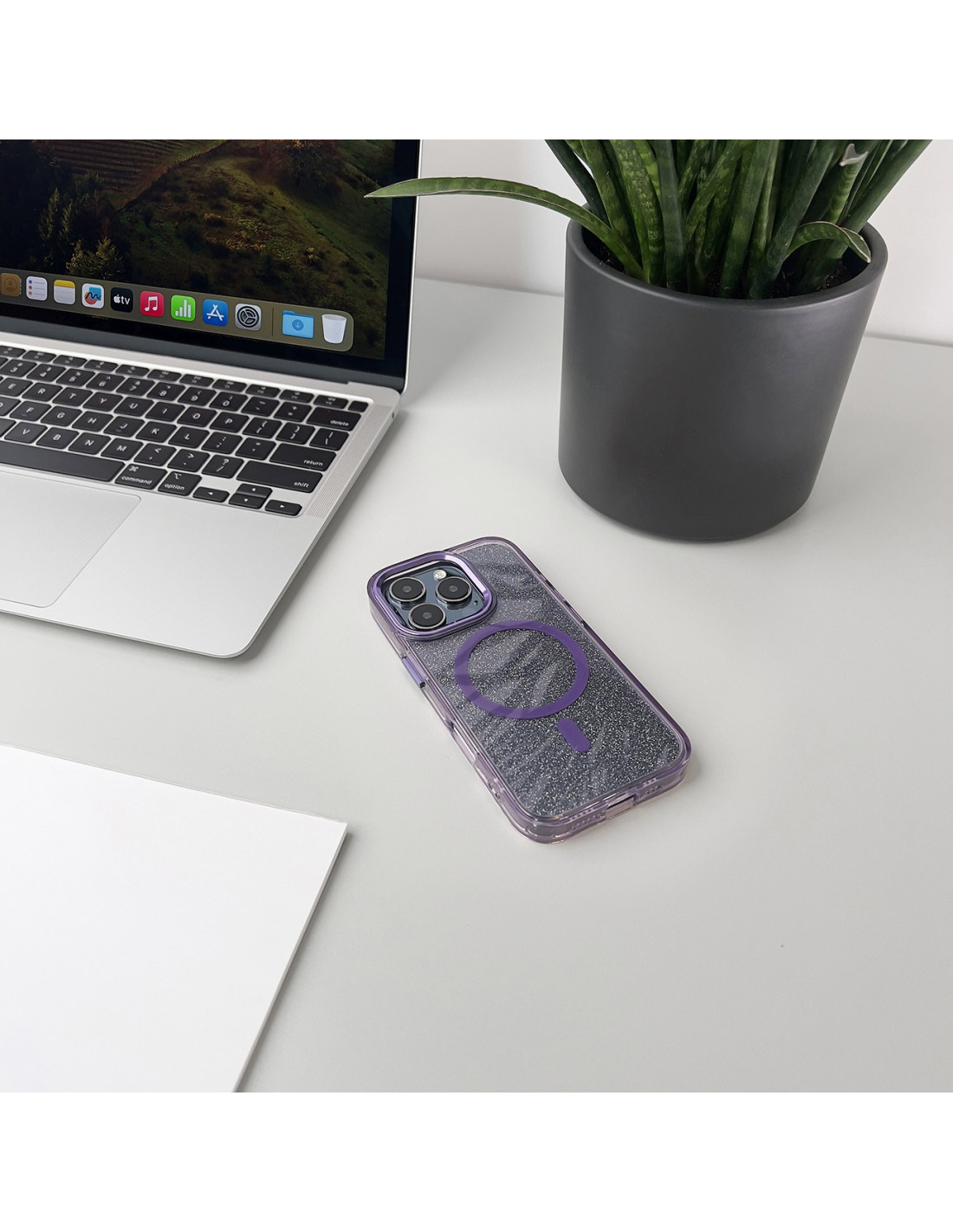 „Samsung Galaxy S24 FE“ blizgučių dėklas „MagSafe“ apsauginis dėklas – violetinis su blizgučiais