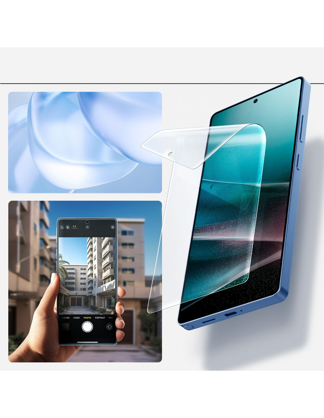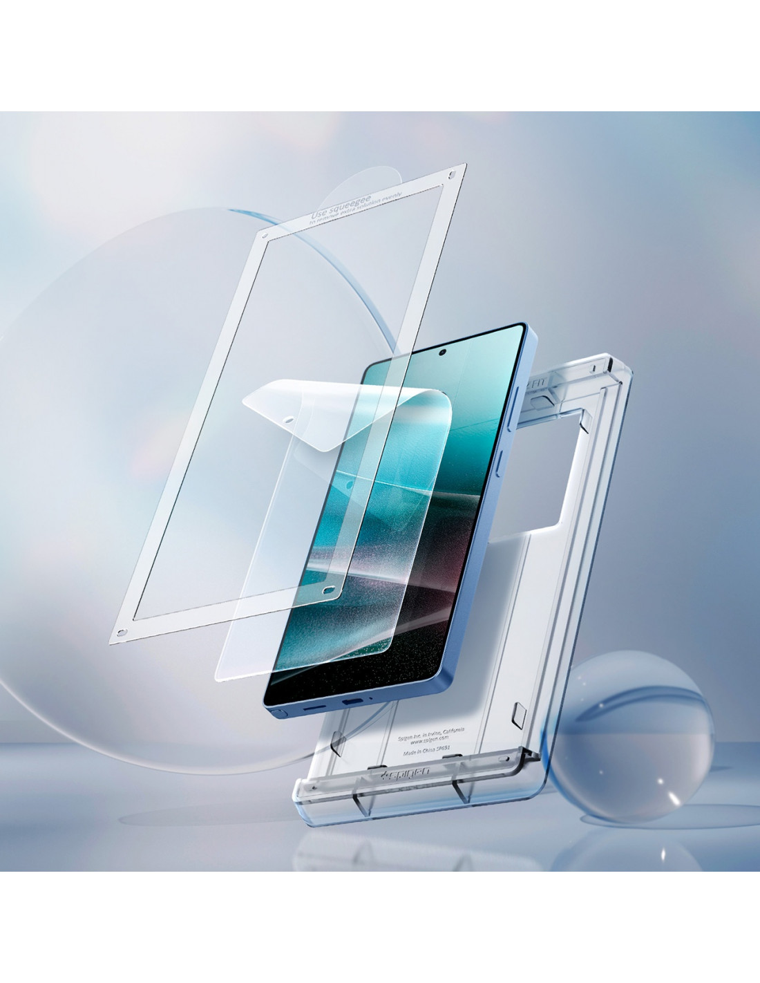 „Spigen“ „Elite Shield“ apsauginė plėvelė, tepama šlapiu būdu, skirta įrenginiams su išlenktais ekranais. Joje naudojama pažangi „TranSheer Layer“ technologija, užtikrinanti skaidrią ir praktiškai nematomą ekrano apsaugą. Ją sudaro keli sluoksniai, įskaitant apsauginį sluoksnį, savaime atsistatantį pagrindinį sluoksnį ir OCA klijų sluoksnį, užtikrinantys puikų aiškumą ir ilgaamžiškumą. Dėl lanksčios EPU medžiagos ji puikiai prisitaiko prie išlenktų ekrano kraštų, užtikrindama visišką padengimą ir apsaugą nuo mechaninių pažeidimų.