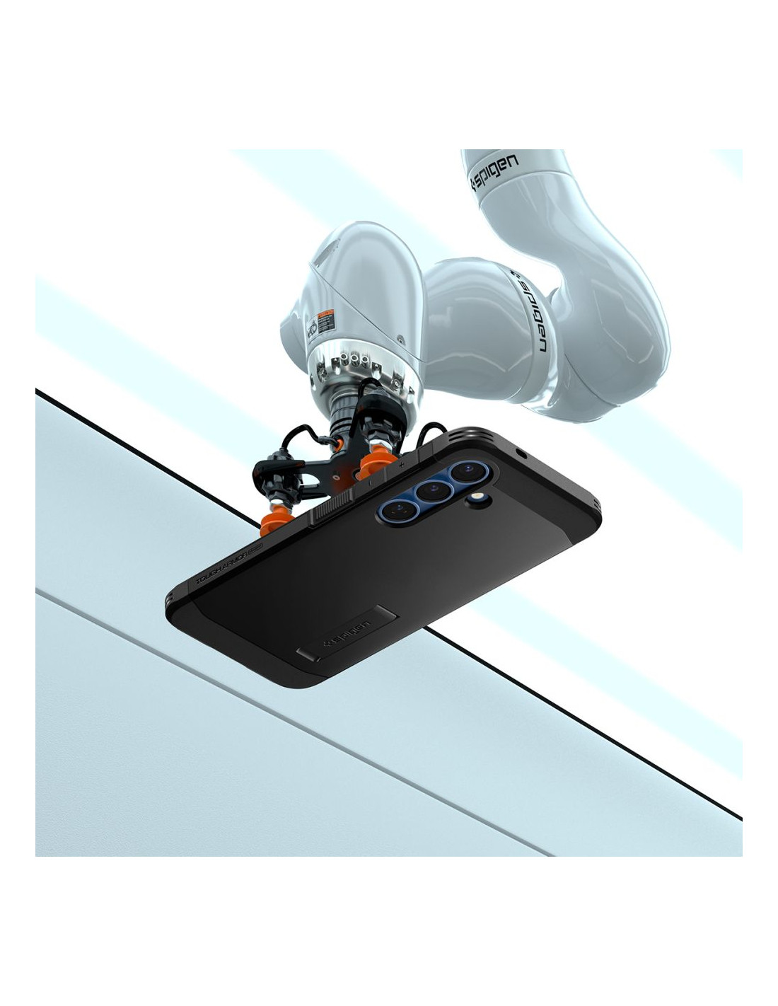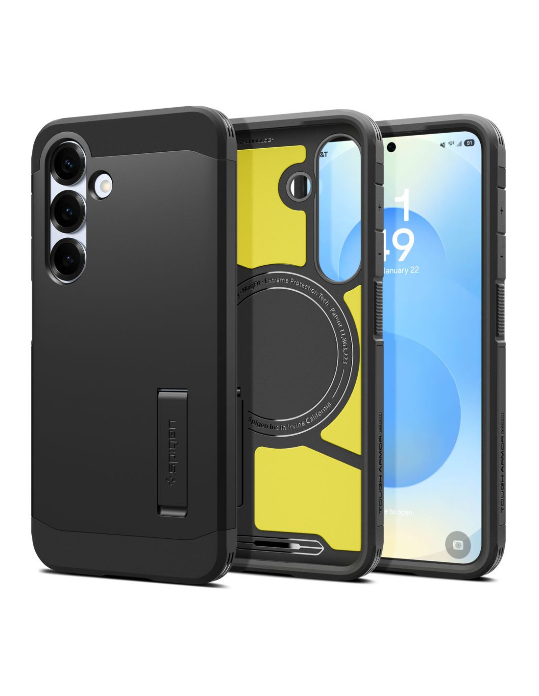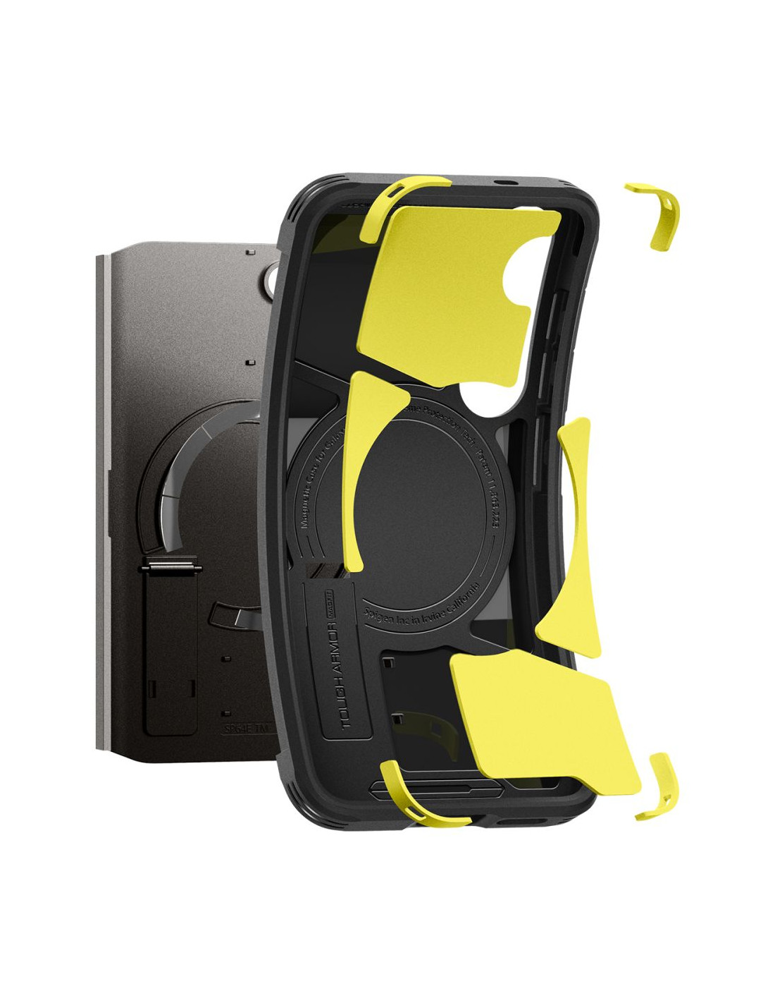 „Spigen“ „Tough Armor“ dėklas yra patobulinta savo pirmtako versija. Jame yra magnetinis žiedas , suderinamas su „MagSafe“ tvirtinimo ir belaidžio įkrovimo sistema , užtikrinantis greitą ir paprastą „Apple“ technologijų naudojimą. Dviejų dalių konstrukcija pagaminta iš dilimui atsparaus termoplasto ir sutvirtinančio polikarbonato rėmo. Dėklo viduje yra technologinis putplasčio paminkštinimas, kuris suteikia papildomą apsaugos sluoksnį nuo smūgių ar kritimų. Dėklas puikiai priglunda ir netrukdo belaidžiam įkrovimui. Šiek tiek pakelta konstrukcija aplink kamerą ir ekraną apsaugo juos nuo įbrėžimų, pakeliant telefoną šiek tiek virš lygaus paviršiaus. Jame yra mygtukų dangteliai ir angos prievadams. „Tough Armor“ dėklas buvo 26 kartus išbandytas kritimo metu iš 1,2 metro aukščio, todėl gavo Amerikos MIL-STD 810G-516.6 sertifikatą.