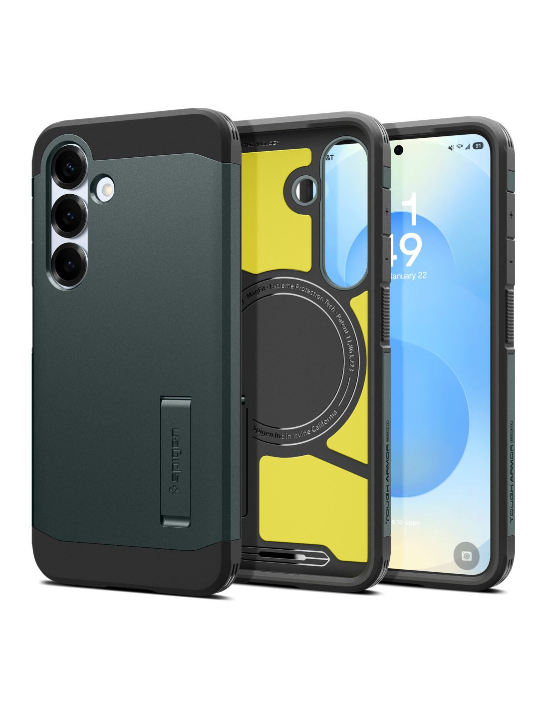 „Samsung Galaxy S25“ dėklas su tvirtu „Tough Armor MagSafe“ stovu – žalias