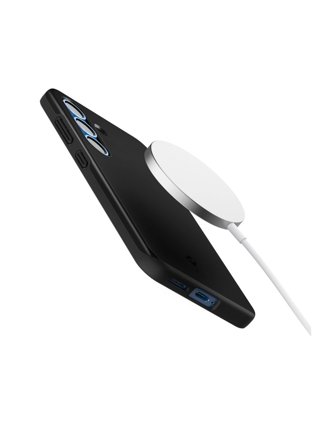 Lengvas ir itin plonas (1,55 mm) „Spigen“ „Thin Fit Magsafe“ apsauginis dėklas pagamintas iš TPU ir patvaraus, šiek tiek lanksčio polikarbonato. Tai užtikrina patikimą įrenginio apsaugą ir pagerina jo sukibimą. Gaminys puikiai priglunda, yra visiškai funkcionalus , neriboja prieigos prie išorinių prievadų ir efektyviai apsaugo telefoną nuo įbrėžimų ir nedidelių kritimų. Visi „Spigen“ gaminiai yra išbandyti dėl atsparumo dilimui ir tikslaus prigludimo, kad būtų užtikrinta aukštos kokybės dėklas. Dėkle yra žiedas, suderinamas su belaide „MagSafe“ technologija. Magnetinis žiedas užtikrina maksimalų įkrovimo efektyvumą ir greitą bei paprastą prijungimą prie visų „MagSafe“ palaikančių priedų.