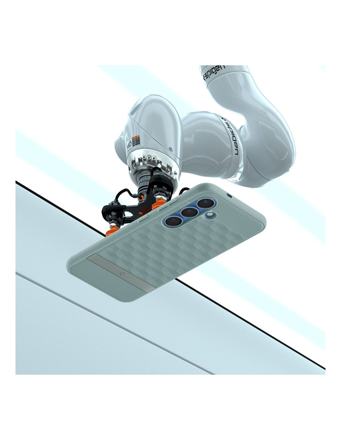 Stilingas „Spigen Parallax Mag“ dėklas – tai unikalus dizainerio dizaino ir elegantiškų spalvų derinys. Dėklas puikiai priglunda ir netrukdo belaidžiam įkrovimui. Pakelti kraštai aplink kamerą apsaugo nuo įbrėžimų ir sukuria įdomų vaizdinį efektą. Stilinga apdaila ne tik sukuria unikalią išvaizdą, bet ir užtikrina ergonomiką bei saugų sukibimą naudojimo metu. Patvarus ir lankstus TPU patikimai apsaugo jūsų išmanųjį telefoną. Be to, gamintojas kiekviename kampe įrengė „Air Space“ technologiją, kad įrenginys būtų dar labiau apsaugotas atsitiktinio kritimo atveju. „Spigen Parallax“ turi žiedą, suderinamą su belaidžio ryšio technologija „MagSafe“. Magnetinis žiedas užtikrina maksimalų įkrovimo efektyvumą ir greitą bei paprastą prijungimą prie visų „MagSafe“ priedų. „Parallax“ dėklas buvo 26 kartus išbandytas kritimo iš 1,2 metro aukščio, todėl gavo Amerikos karinį MIL-STD 810G-516.6 sertifikatą.