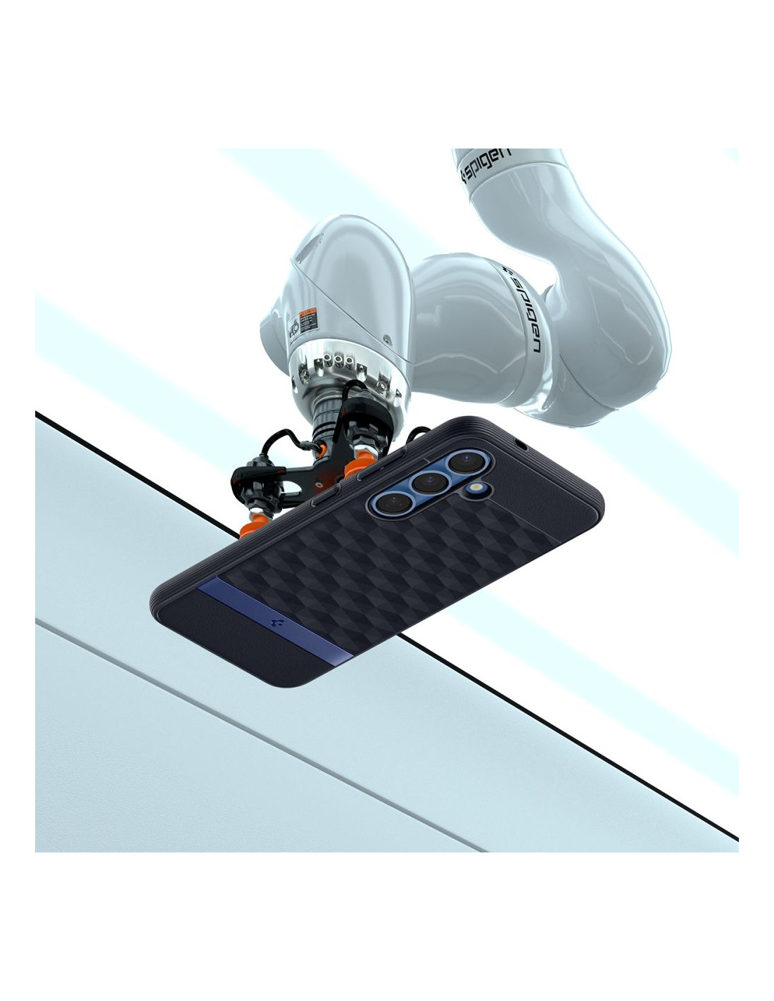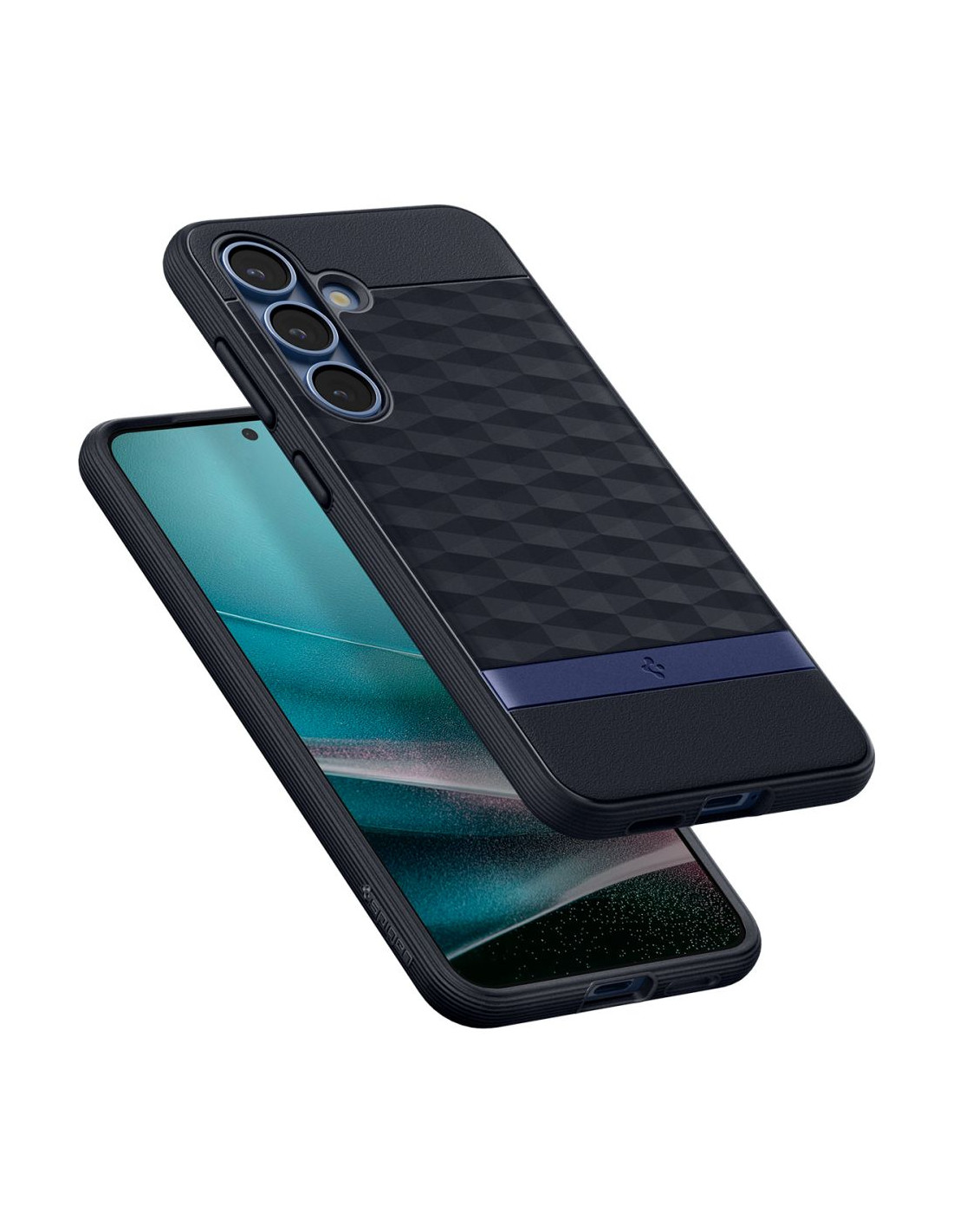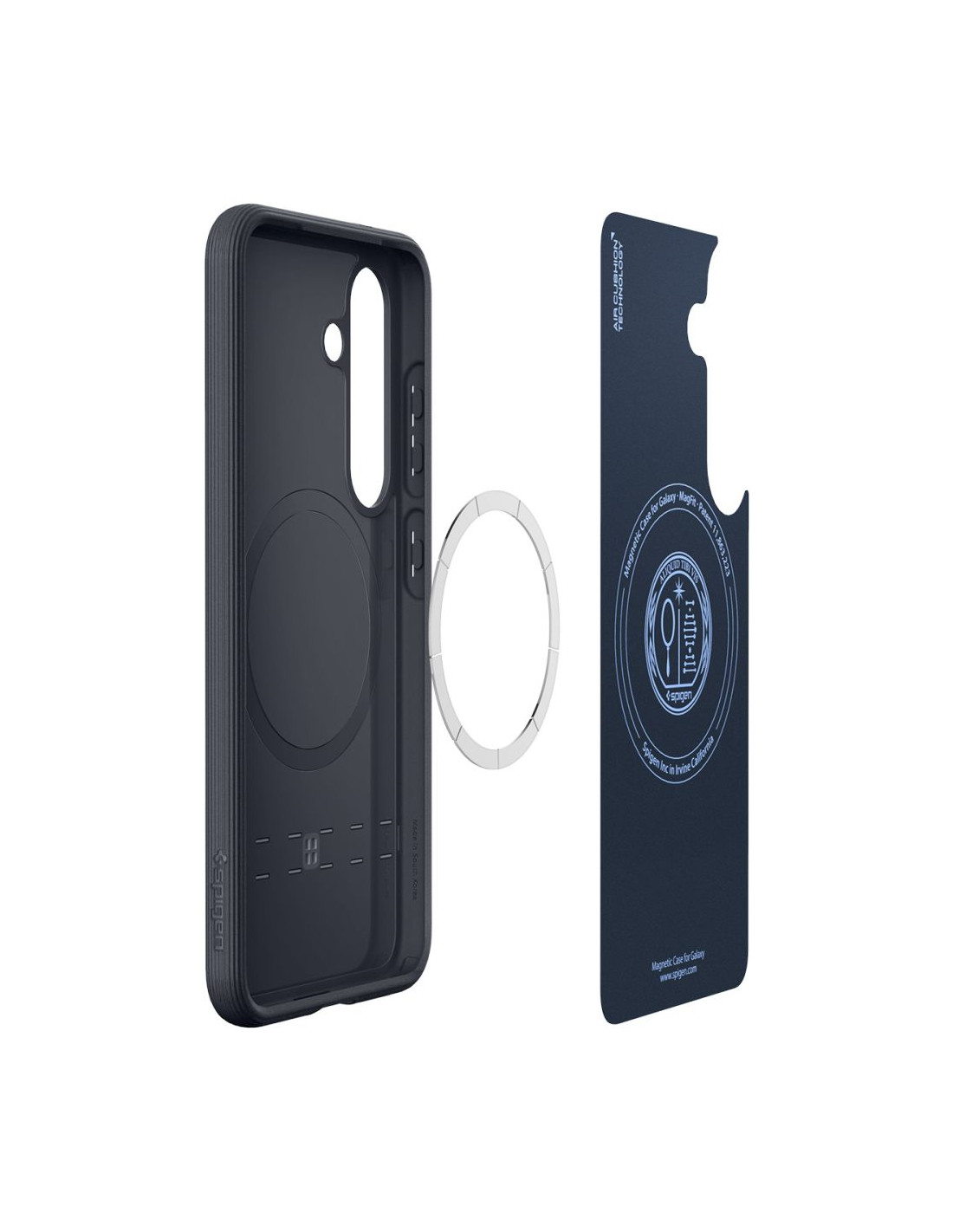 Stilingas „Spigen Parallax Mag“ dėklas – tai unikalus dizainerio dizaino ir elegantiškų spalvų derinys. Dėklas puikiai priglunda ir netrukdo belaidžiam įkrovimui. Pakelti kraštai aplink kamerą apsaugo nuo įbrėžimų ir sukuria įdomų vaizdinį efektą. Stilinga apdaila ne tik sukuria unikalią išvaizdą, bet ir užtikrina ergonomiką bei saugų sukibimą naudojimo metu. Patvarus ir lankstus TPU patikimai apsaugo jūsų išmanųjį telefoną. Be to, gamintojas kiekviename kampe įrengė „Air Space“ technologiją, kad įrenginys būtų dar labiau apsaugotas atsitiktinio kritimo atveju. „Spigen Parallax“ turi žiedą, suderinamą su belaidžio ryšio technologija „MagSafe“ . Magnetinis žiedas užtikrina maksimalų įkrovimo efektyvumą ir greitą bei paprastą prijungimą prie visų „MagSafe“ priedų. „Parallax“ dėklas buvo 26 kartus išbandytas kritimo iš 1,2 metro aukščio, todėl gavo Amerikos MIL-STD 810G-516.6 sertifikatą.