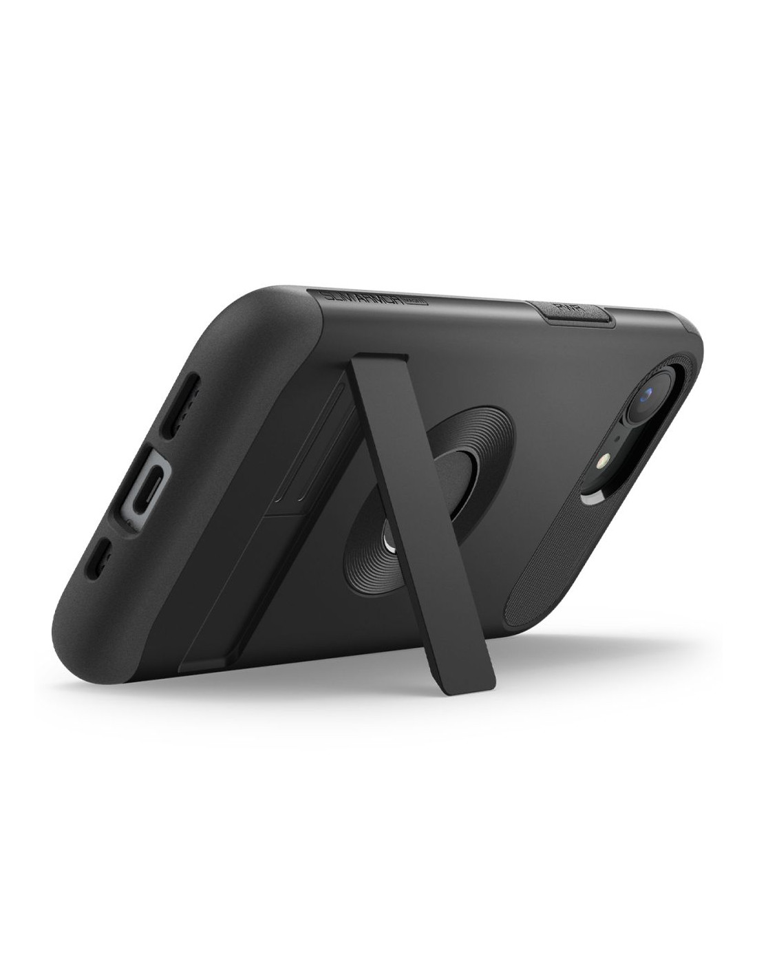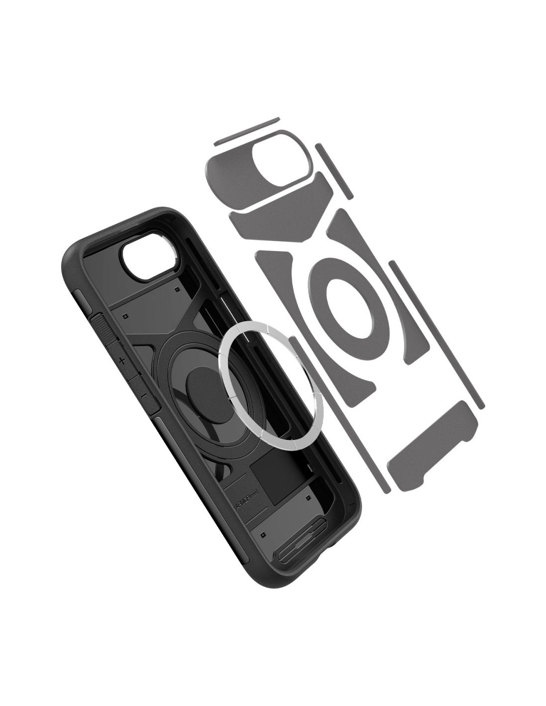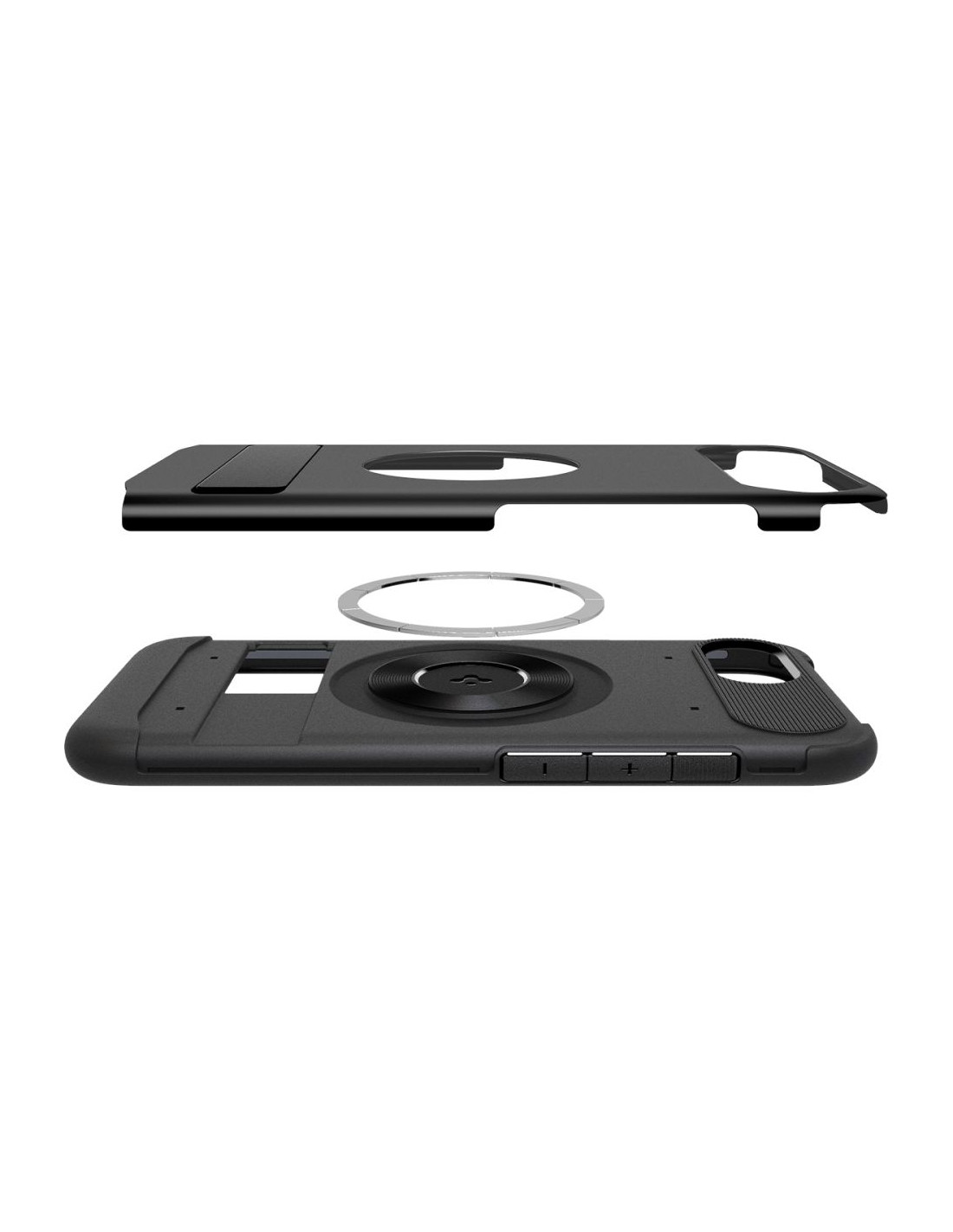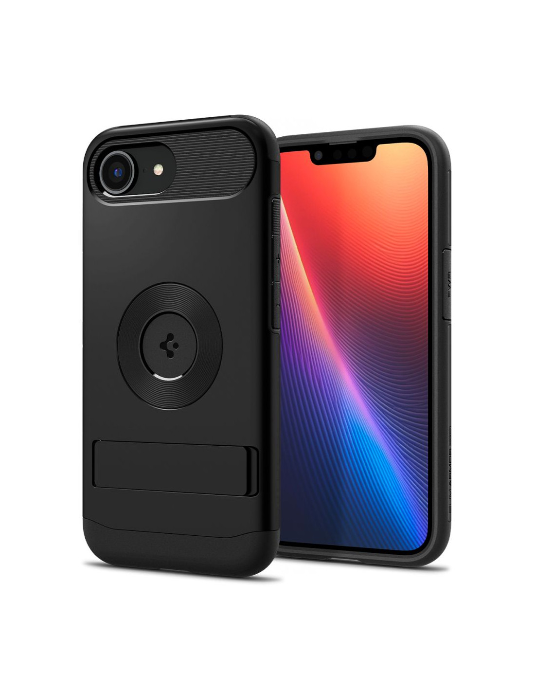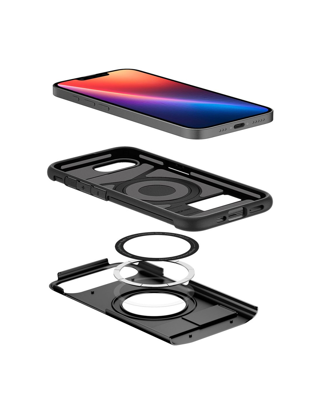 „Spigen Slim Armor Masgafe“ – tai dėklas, kuris sujungia išskirtinę apsaugą su elegantišku, plonu dizainu. Sukurtas tiems, kuriems reikia tvirtos išmaniojo telefono apsaugos neprarandant estetikos ir naudojimo patogumo. Dėl dvisluoksnės konstrukcijos „Slim Armor“ efektyviai apsaugo nuo kritimų ir smūgių, išlaikydamas ploną profilį, kuris puikiai priglunda prie rankos. Tai puikus pasirinkimas tiems, kurie nori užtikrinti, kad jų telefonas būtų geriausiose rankose. Lankstaus TPU ir patvaraus polikarbonato derinys užtikrina maksimalią apsaugą nuo smūgių, kritimų ir įbrėžimų. Sustiprinti kampai su oro pagalvėlėmis efektyviai sugeria smūgius, padidindami atsparumą kritimams. Nepaisant pažangios apsaugos, dėklas išlaiko ploną formą, kuri nepadidina įrenginio svorio. Šiek tiek pakelti kraštai aplink ekraną ir kamerą suteikia papildomą apsaugą nuo įbrėžimų, o puikiai pagamintos išpjovos užtikrina lengvą prieigą prie visų prievadų, mygtukų ir išmaniojo telefono funkcijų. Praktiškas, sulankstomas stovas leidžia patogiai žiūrėti filmus, naršyti internete ar skambinti laisvų rankų įranga vaizdo skambučiais. Dėkle yra žiedas, suderinamas su belaidžio ryšio technologija „MagSafe“. Magnetinis žiedas užtikrina maksimalų įkrovimo efektyvumą ir greitą bei paprastą prijungimą prie visų priedų, palaikančių „MagSafe“.