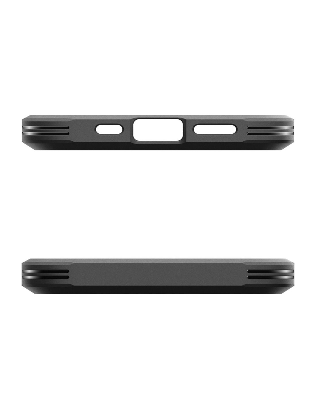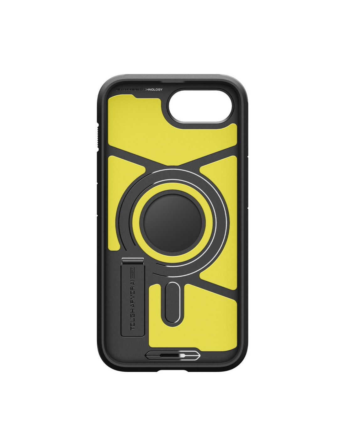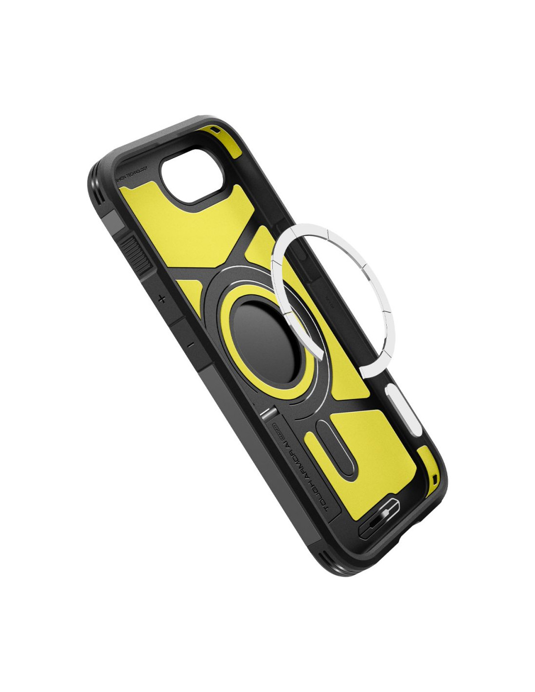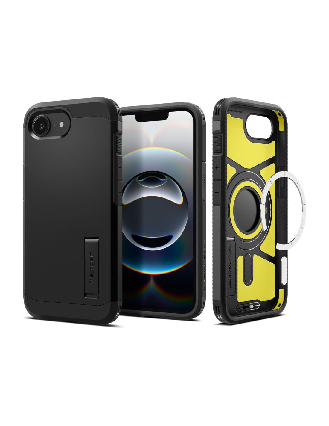 „Spigen“ „Tough Armor Mag“ dėklas yra patobulinta savo pirmtako versija. Jame yra magnetinis žiedas, suderinamas su belaidžio įkrovimo ir tvirtinimo sistema „MagSafe“ , užtikrinantis greitą ir paprastą „Apple“ technologijų naudojimą. Dviejų dalių konstrukcija pagaminta iš dilimui atsparaus termoplasto ir sutvirtinančio polikarbonato rėmo. Dėklo viduje yra technologinis putplasčio paminkštinimas, kuris suteikia papildomą apsaugos sluoksnį nuo smūgių ar kritimų. Dėklas puikiai priglunda ir netrukdo belaidžiam įkrovimui. Šiek tiek pakelta konstrukcija aplink kamerą ir ekraną apsaugo jį nuo įbrėžimų, pakeliant telefoną šiek tiek virš lygaus paviršiaus. Jame yra mygtukų dangteliai ir angos prievadams. „Tough Armor“ dėklas buvo 26 kartus išbandytas kritimo metu iš 1,2 metro aukščio, todėl gavo Amerikos MIL-STD 810G-516.6 sertifikatą.