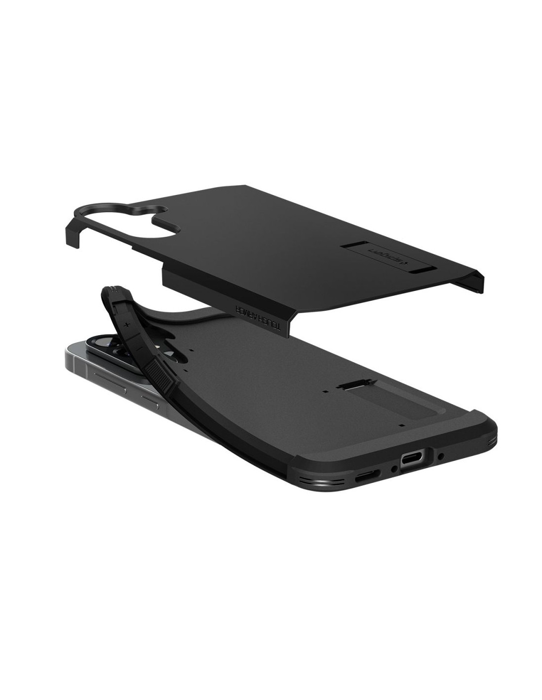 „Spigen“ „Tough Armor“ dėklas yra patobulinta savo pirmtako versija. Jo dviejų dalių konstrukcija pagaminta iš dilimui atsparaus termoplasto ir sutvirtinančio polikarbonato rėmo. Viduje dėklas užpildytas technologinėmis putomis, kurios suteikia papildomą apsaugos sluoksnį nuo smūgių ar kritimų. Šiek tiek pakelta konstrukcija aplink kamerą ir ekraną apsaugo juos nuo įbrėžimų, pakeldama telefoną šiek tiek virš lygaus paviršiaus. Jame yra mygtukų dangteliai ir jungčių išpjovos. „Tough Armor“ dėklas buvo 26 kartus išbandytas kritimo metu iš 1,2 metro aukščio, todėl gavo Amerikos MIL-STD 810G-516.6 sertifikatą.