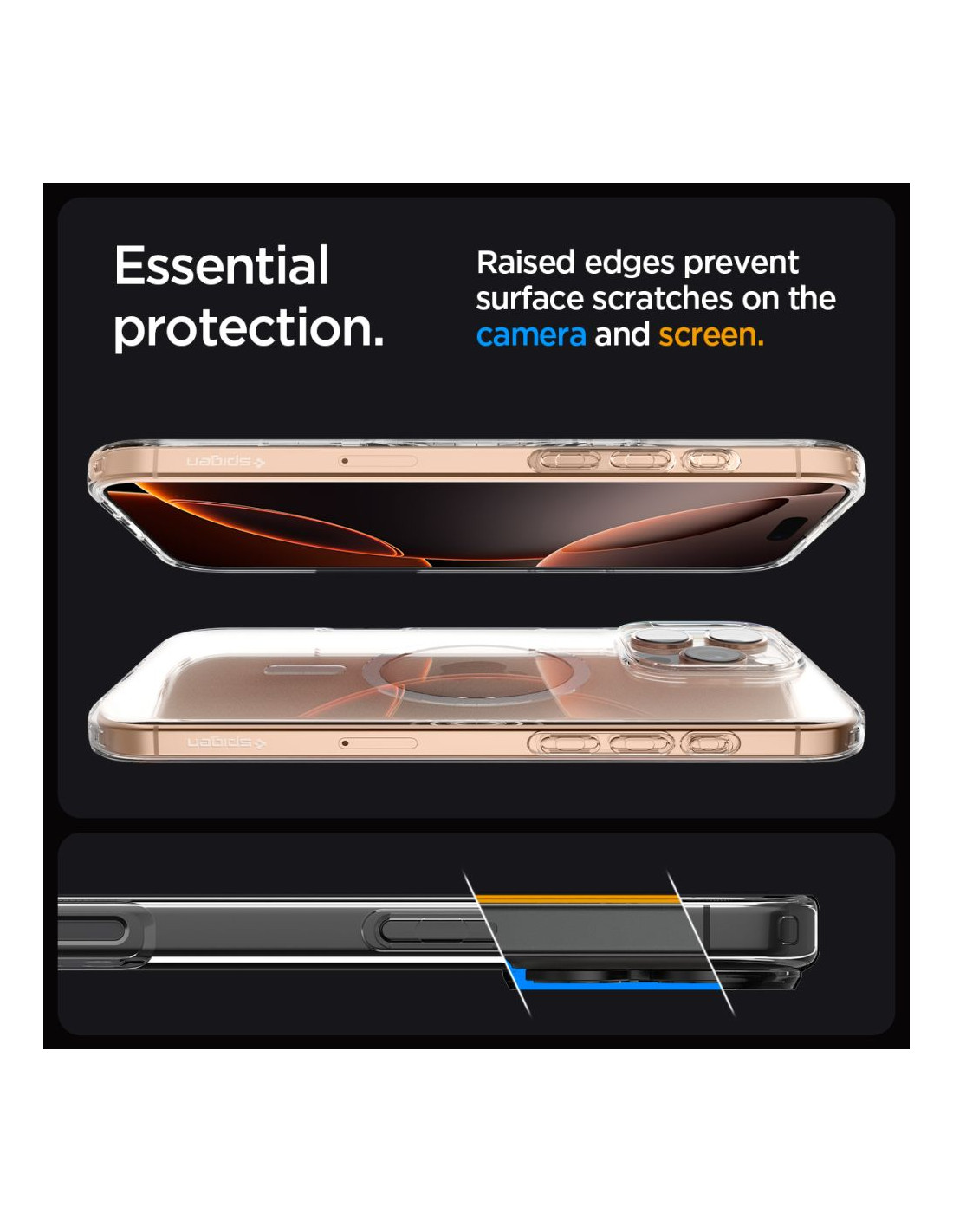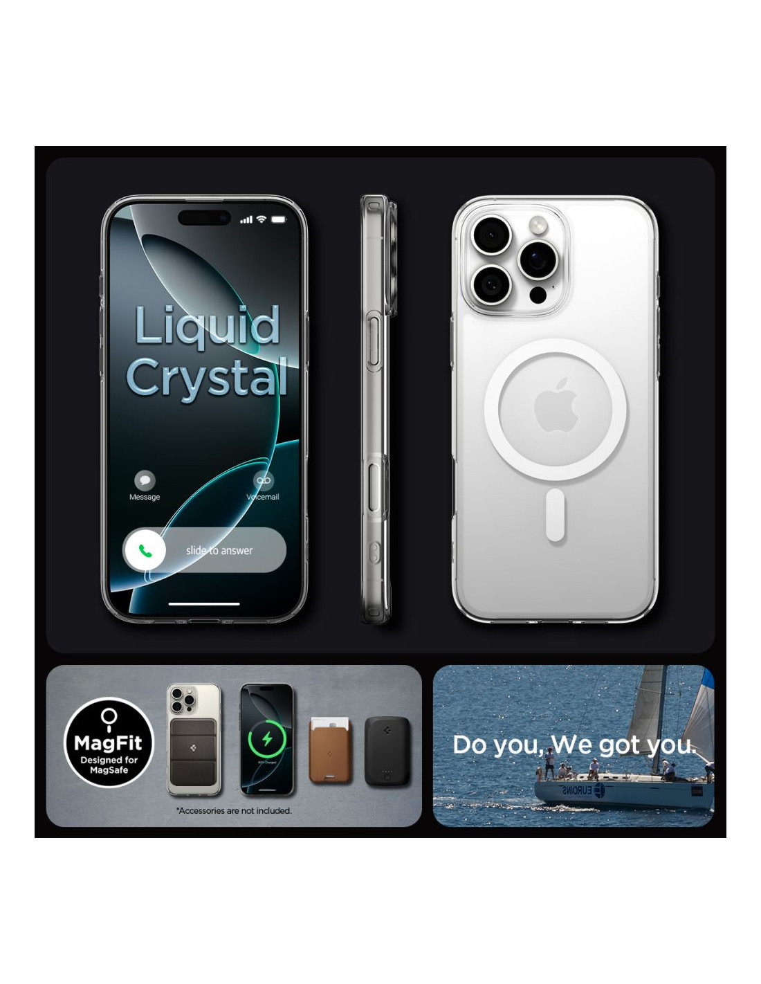 „Spigen Liquid Crystal Magsafe“ – puikus sprendimas tiems, kurie vertina eleganciją, minimalizmą ir patikimą apsaugą. Šis permatomas dėklas puikiai išryškina unikalią jūsų išmaniojo telefono išvaizdą ir užtikrina veiksmingą apsaugą nuo kasdienių įbrėžimų, smūgių ir kritimų. Dėl aukštos kokybės medžiagų naudojimo skystasis kristalas puikiai prilimpa prie įrenginio, nepridėdamas nereikalingo svorio, tuo pačiu užtikrindamas saugų sukibimą ir sumažindamas telefono išslydimo iš rankos riziką. Dėkle yra žiedas, suderinamas su belaide „MagSafe“ technologija . Magnetinis žiedas užtikrina maksimalų įkrovimo efektyvumą ir greitą bei paprastą prijungimą prie visų „MagSafe“ palaikančių priedų.