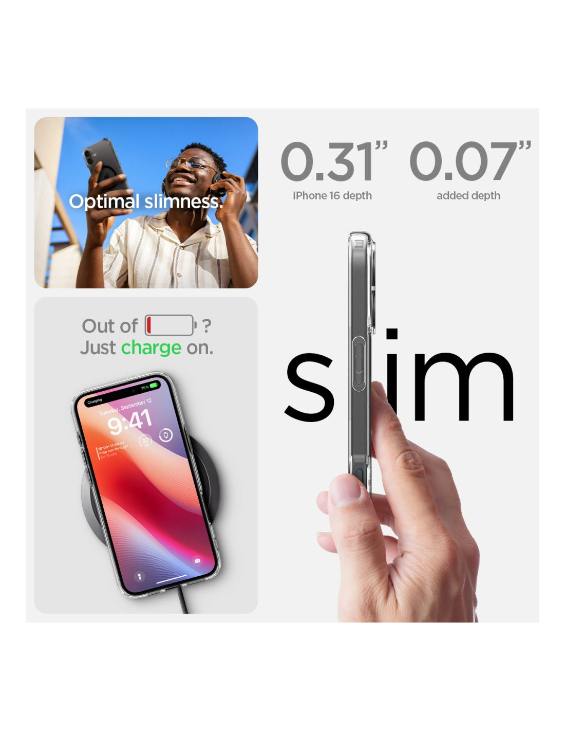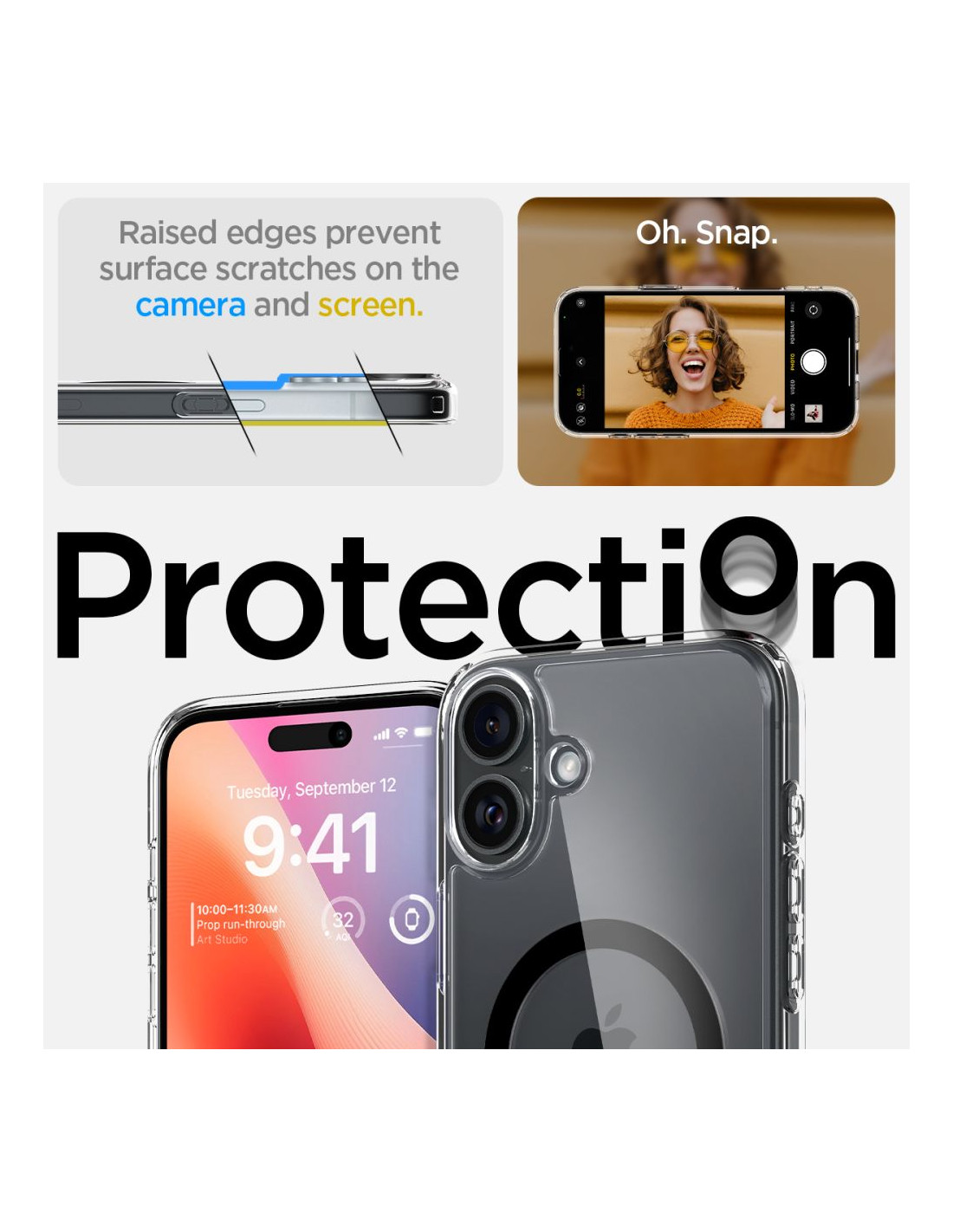 „Spigen Ultra Hybrid Magsafe“ – tai dėklas , kuris sujungia geriausią apsaugą ir estetiką, suteikdamas jūsų išmaniajam telefonui ir saugumą, ir unikalią išvaizdą. Dėl unikalios hibridinės konstrukcijos (TPU + PC), kuri sujungia patvarų rėmą su skaidriu skydeliu, jūsų telefonas išlaiko savo originalų dizainą ir yra efektyviai apsaugotas nuo pažeidimų. Sutvirtinti kampai su oro pagalvėlėmis efektyviai sugeria smūgius, užtikrindami papildomą apsaugą nuo kritimo. Šiek tiek pakelti kraštai aplink ekraną ir kamerą apsaugo šiuos elementus nuo tiesioginio sąlyčio su plokščiais paviršiais, o tiksliai pagamintos išpjovos leidžia lengvai pasiekti visus prievadus, mygtukus ir įrenginio funkcijas. Dėkle yra žiedas, suderinamas su belaidžio ryšio „MagSafe“ technologija. Magnetinis žiedas užtikrina maksimalų įkrovimo efektyvumą ir greitą bei paprastą prijungimą prie visų „MagSafe“ priedų. „Spigen Ultra Hybrid“ yra puikus pasirinkimas tiems, kurie nori apsaugoti savo telefoną neužstodami natūralaus jo grožio.