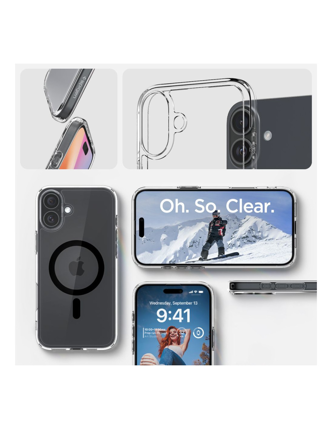 „iPhone 16 Plus Ultra Hybrid Mag“ galinis dėklas su „MagSafe“ – permatomas juodas