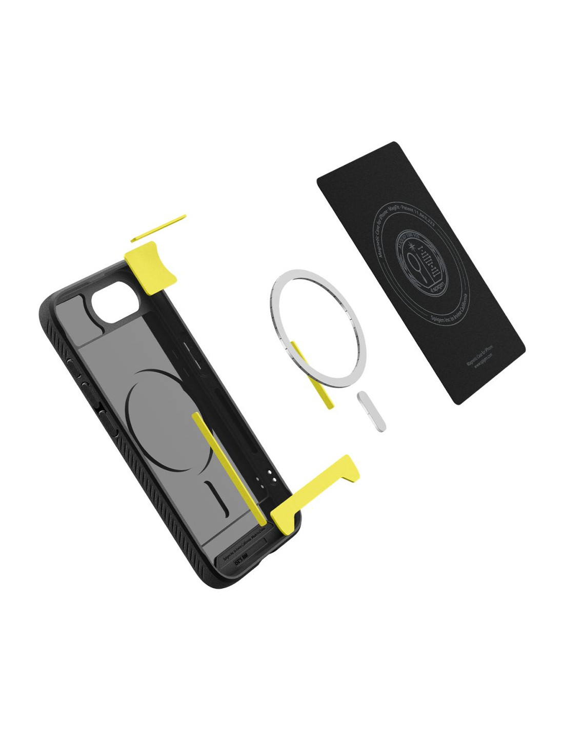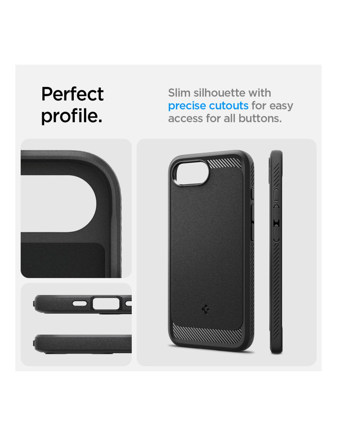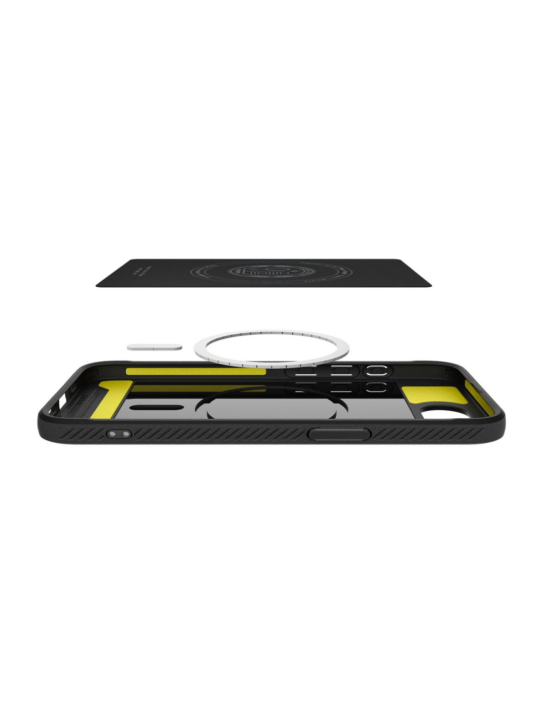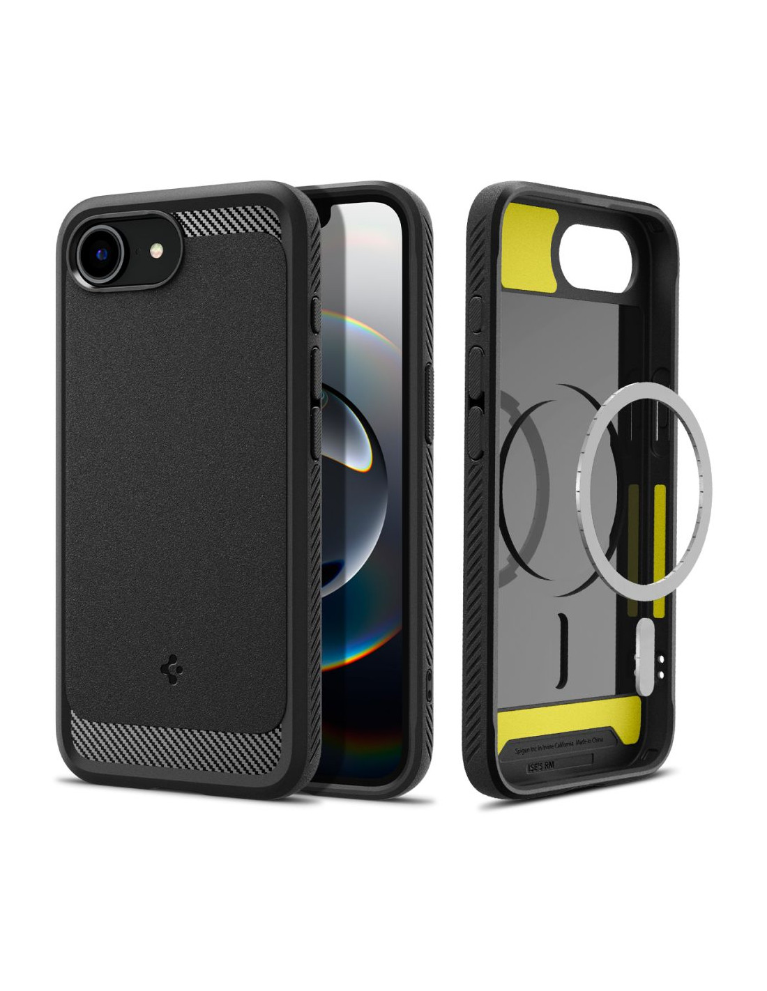 „Spigen Rugged Armor Magsafe“ – tai unikalus dėklas, kuriame derinamas modernus dizainas ir puiki įrenginio apsauga. Pagamintas iš patvarios ir lanksčios TPU medžiagos , atsparios trinčiai, jis papildomai padengtas blizgia anglies pluoštu, sukuriančiu elegantišką anglies pluošto tekstūrą. „Rugged Armor“ suteikia ne tik stilingą išvaizdą, bet ir neprilygstamą patvarumą. Dėl pažangios apsaugos technologijos ir tikslaus gamybos proceso jūsų išmanusis telefonas bus apsaugotas nuo visų kasdienio naudojimo pavojų. Dėklo viduje yra technologinis putplastis, suteikiantis papildomą apsaugos sluoksnį nuo smūgių ar kritimų. Dėkle yra žiedas, suderinamas su belaide „MagSafe“ technologija. Magnetinis žiedas užtikrina maksimalų įkrovimo efektyvumą ir greitą bei paprastą prijungimą prie visų „MagSafe“ palaikančių priedų.