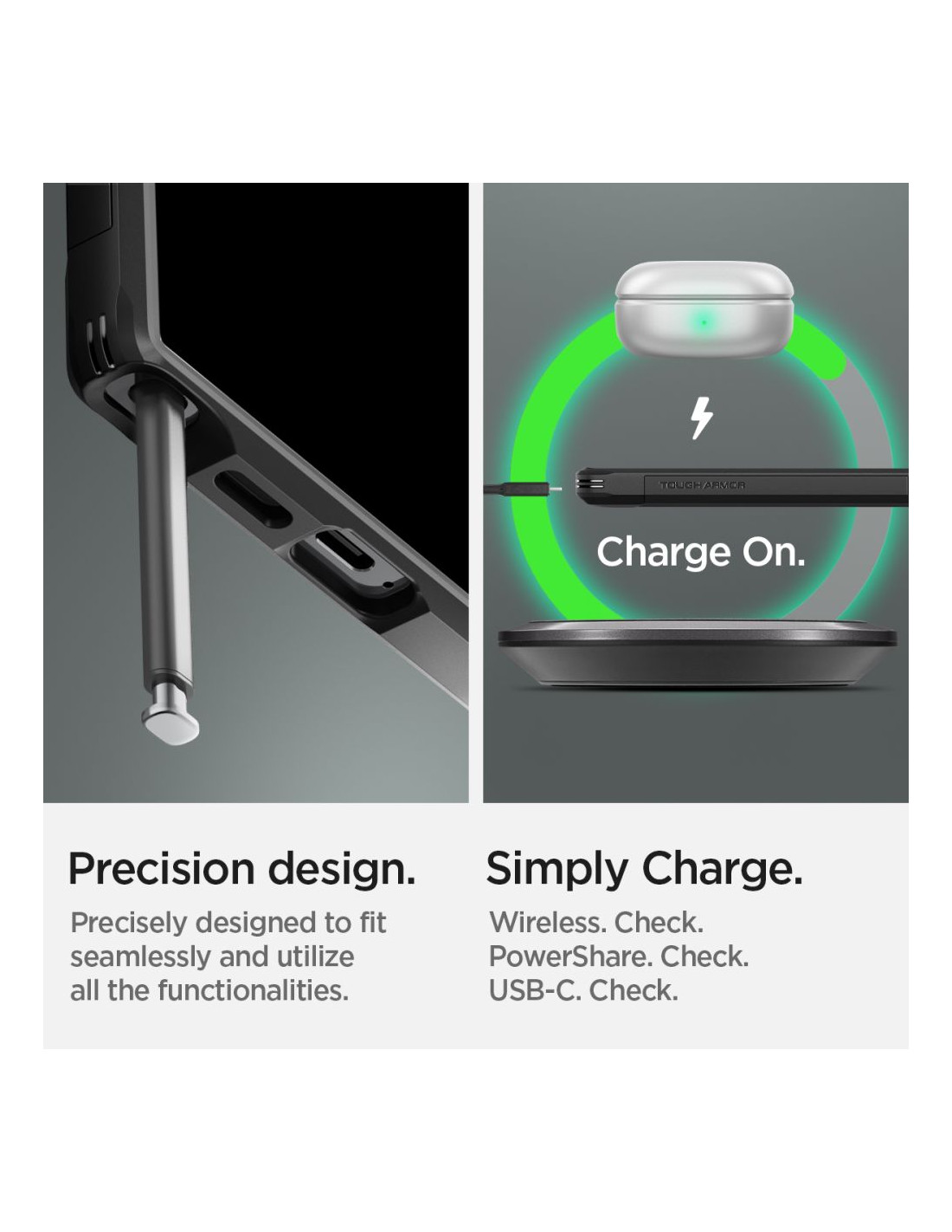 „Spigen“ „Tough Armor“ dėklas yra naujas kompanijos dėklas. Jo dviejų dalių konstrukcija pagaminta iš dilimui atsparaus termoplasto ir sutvirtinančio polikarbonato rėmo. Viduje dėklas užpildytas technologinėmis putomis, kurios suteikia papildomą apsaugos sluoksnį nuo smūgių ar kritimų. Dėklas su stovu leidžia lengvai matyti, kas vyksta telefono ekrane, jo nelaikant. Dėklas puikiai priglunda ir netrukdo belaidžiam įkrovimui. Šiek tiek pakelta konstrukcija aplink kamerą ir ekraną apsaugo jį nuo įbrėžimų, pakeliant telefoną šiek tiek virš lygaus paviršiaus. Jame yra mygtukų dangteliai ir angos prievadams. „Tough Armor“ dėklas buvo 26 kartus išbandytas kritimo metu iš 1,2 metro aukščio, todėl gavo Amerikos MIL-STD 810G-516.6 sertifikatą.
