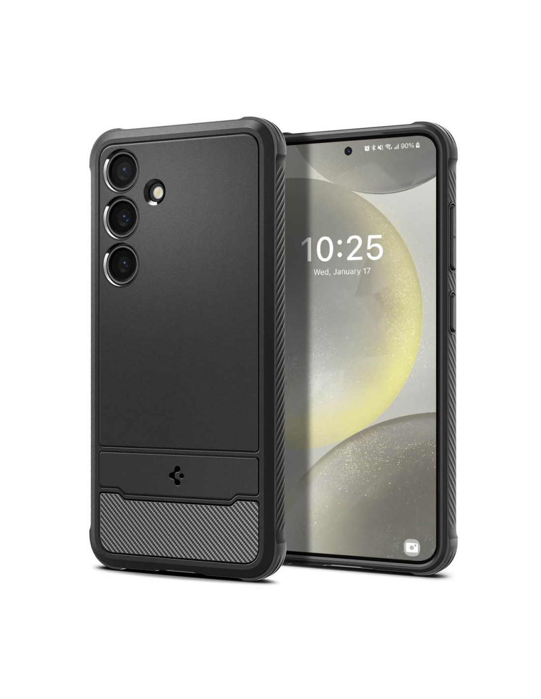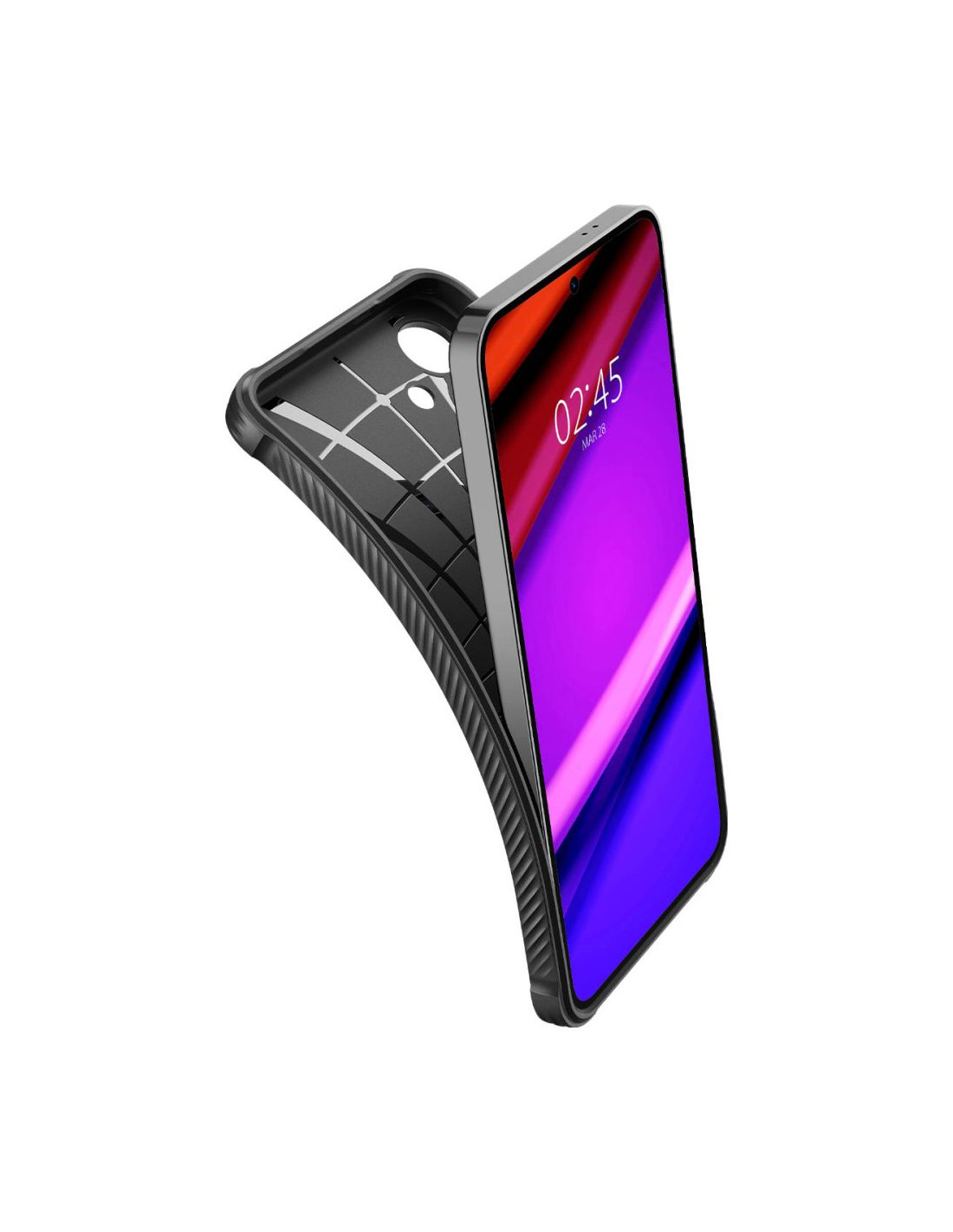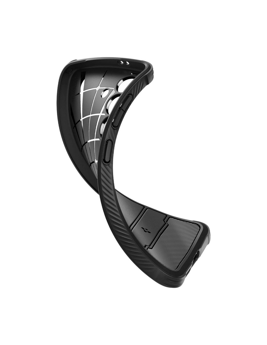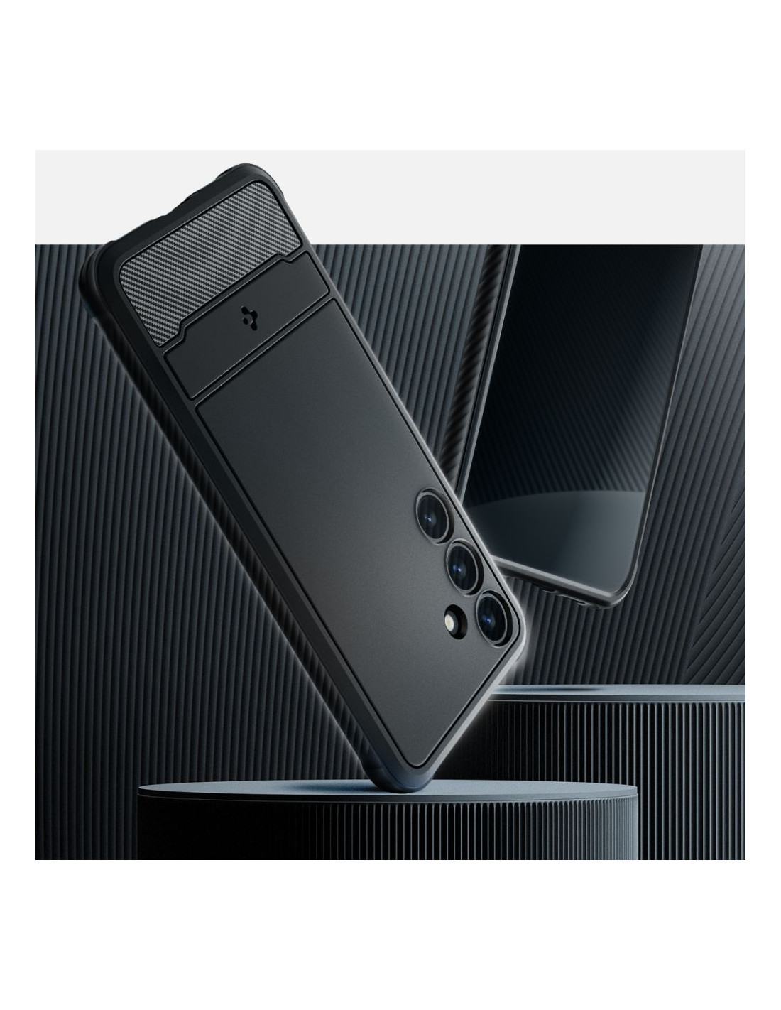 Gana plonas apsauginis dėklas . Pagamintas iš patvarios ir lanksčios TPU medžiagos, jis atsparus dilimui. „Rugged Armor“ padengtas blizgančiu anglies pluoštu, sukuriančiu elegantišką anglies pluošto tekstūrą. Produktas yra puikiai prigludęs, pilnai funkcionalus, neriboja prieigos prie išorinių prievadų ir efektyviai apsaugo įrenginį nuo įbrėžimų ar kritimų. „Rugged Armor“ gali pasigirti moderniu dizainu. „Rugged Armor“ buvo išbandytas tinkamumo testuose ir gavo MIL STD 810G-516.6 sertifikatą, o tai reiškia, kad jis buvo 26 kartus numestas iš 2 metrų aukščio. Visi „Spigen“ gaminiai yra testuojami dėl atsparumo dilimui ir tikslaus prigludimo, siekiant užtikrinti aukštos kokybės dėklą.