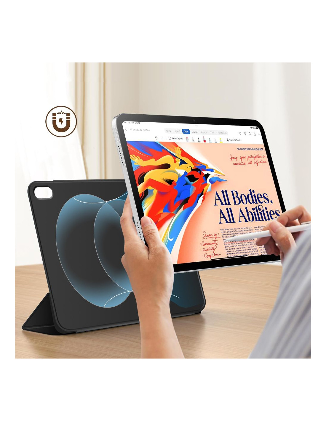 „Tech-Protect SmartCase Magnetic“ – tai modernus ir funkcionalus sprendimas, skirtas apsaugoti „iPad“. Pagamintas iš aukštos kokybės medžiagų , jis efektyviai apsaugo įrenginį nuo įbrėžimų, smūgių ir purvo, išlaikant ploną ir elegantišką išvaizdą. „SmartCase Magnetic“ sukurtas atsižvelgiant į paprastą naudojimą. Įmontuoti magnetai leidžia dėklui lengvai pritvirtinti ir nuimti „iPad“, todėl jį galima greitai ir lengvai įdiegti bei nuimti. Automatinio žadinimo ir miego funkcijos labai palengvina kasdienį naudojimą. Unikalus dizainas leidžia dėklą greitai transformuotis į praktišką stovą, leidžiantį „iPad“ pastatyti įvairiais kampais – puikiai tinka žiūrėti filmus, dirbti ar naršyti internete. Magnetinis atvartas ne tik apsaugo ekraną, bet ir suteikia įrenginiui modernumo. Dėkle taip pat yra specialus lizdas „Apple Pencil“ , todėl jis yra dar funkcionalesnis aksesuaras kasdieniam naudojimui. „Tech-Protect SmartCase Magnetic“ yra puikus pasirinkimas tiems, kurie ieško apsaugos, patogumo ir elegancijos derinio.