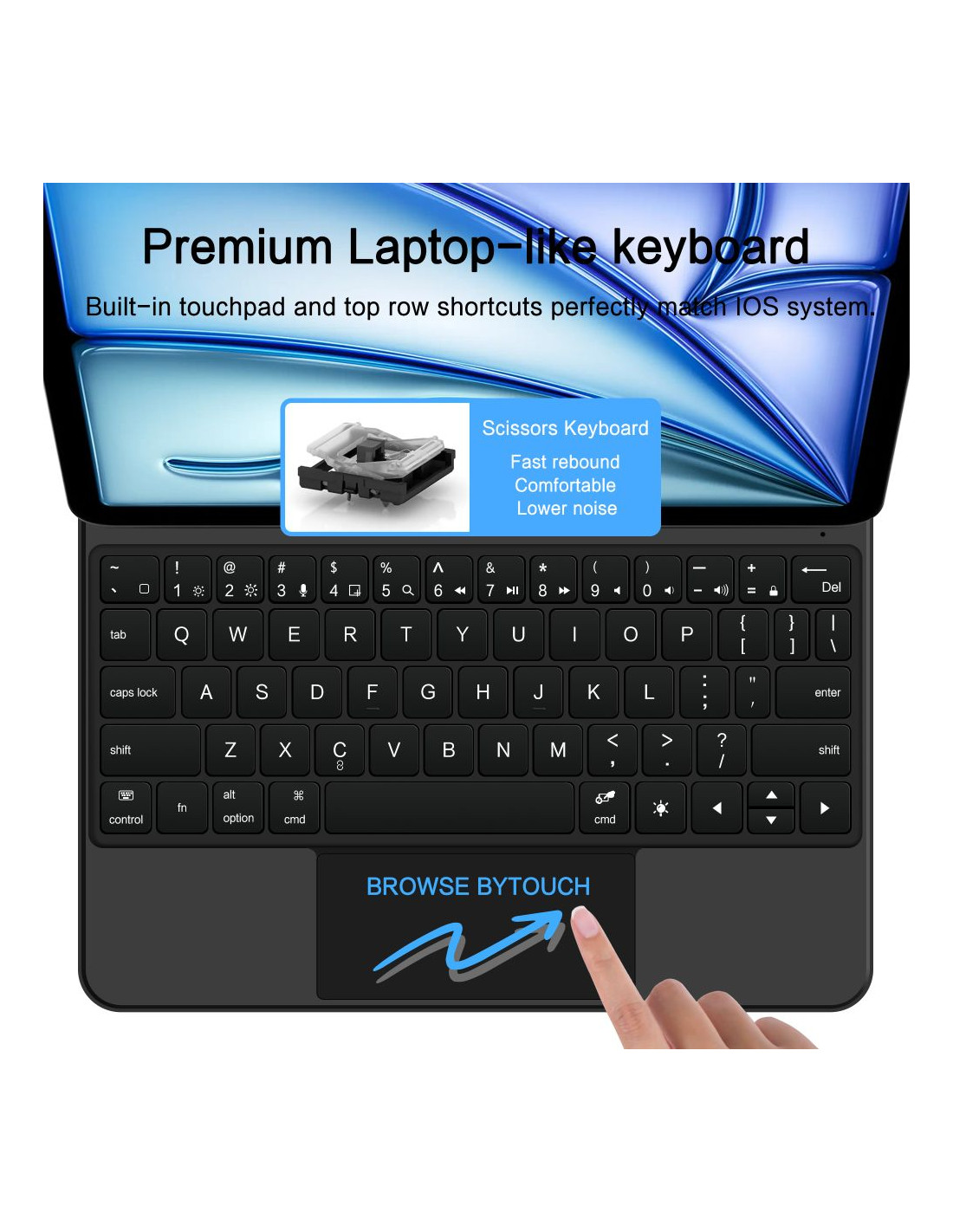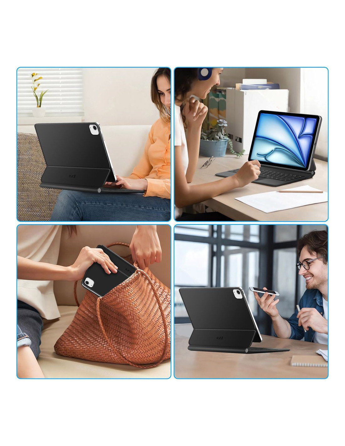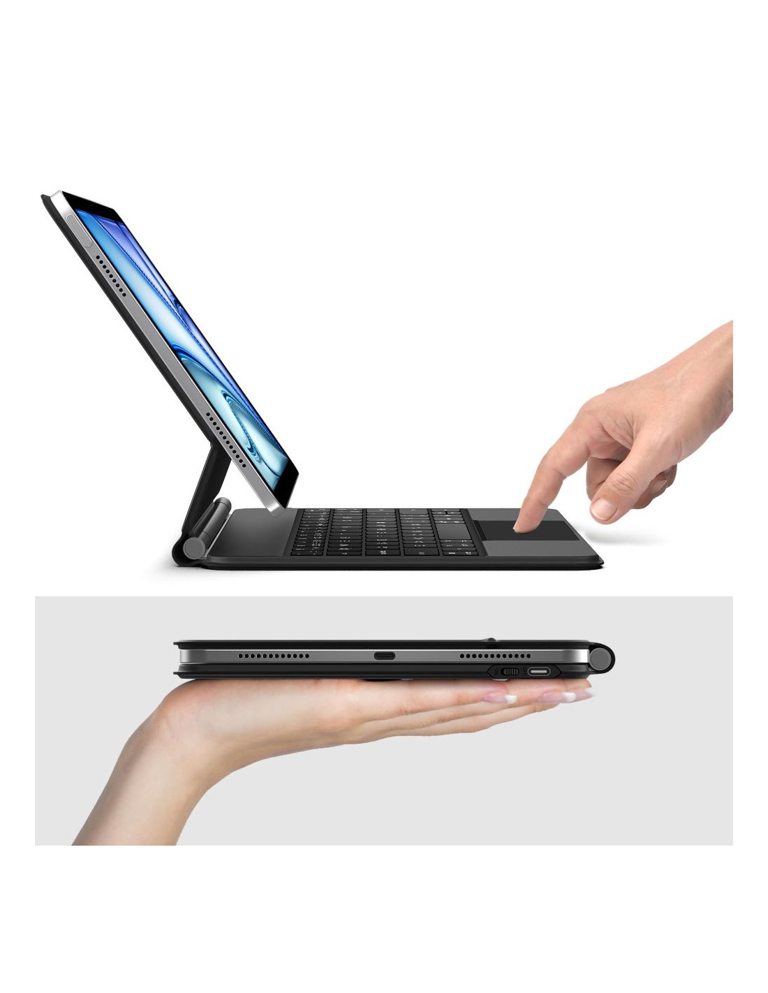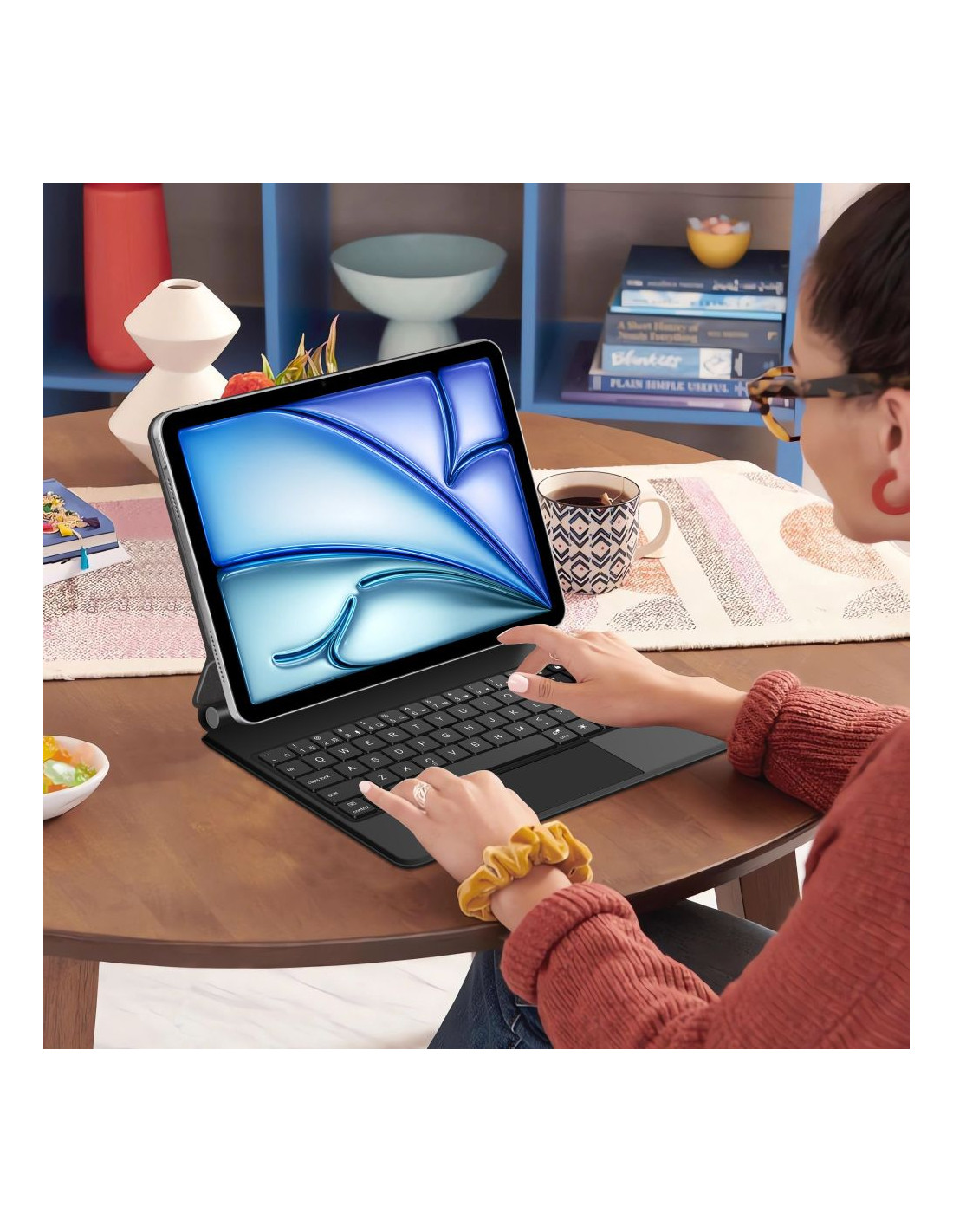 „Tech-Protect SmartCase Magnetic“ su klaviatūra yra praktiškas ir modernus aksesuaras, paverčiantis jūsų „iPad“ funkcionalia priemone darbui, mokymuisi ir pramogoms. Šis elegantiško dėklo, magnetinio laikiklio ir belaidės klaviatūros su jutikliniu skydeliu derinys kasdienį planšetinio kompiuterio naudojimą daro dar patogesnį. Magnetinis dėklas tvirtai laiko jūsų „iPad“ vietoje , leisdamas jį nustatyti tobulu kampu – nesvarbu, ar rašote, žiūrite filmus, ar atliekate vaizdo skambučius. Kameros ir prievadų išpjovos leidžia visapusiškai išnaudoti įrenginio funkcijas neišimant dėklo. Pridedama „Bluetooth“ klaviatūra su foniniu apšvietimu pasižymi patogiu, nešiojamojo kompiuterio stiliaus išdėstymu ir tiksliu jutikliniu skydeliu, leidžiančiu rašyti, naršyti internete ir naršyti programose neliečiant ekrano. Integruoti sistemos spartieji klavišai pagreitina darbo eigą, o klaviatūrą lengva prijungti ir naudoti.