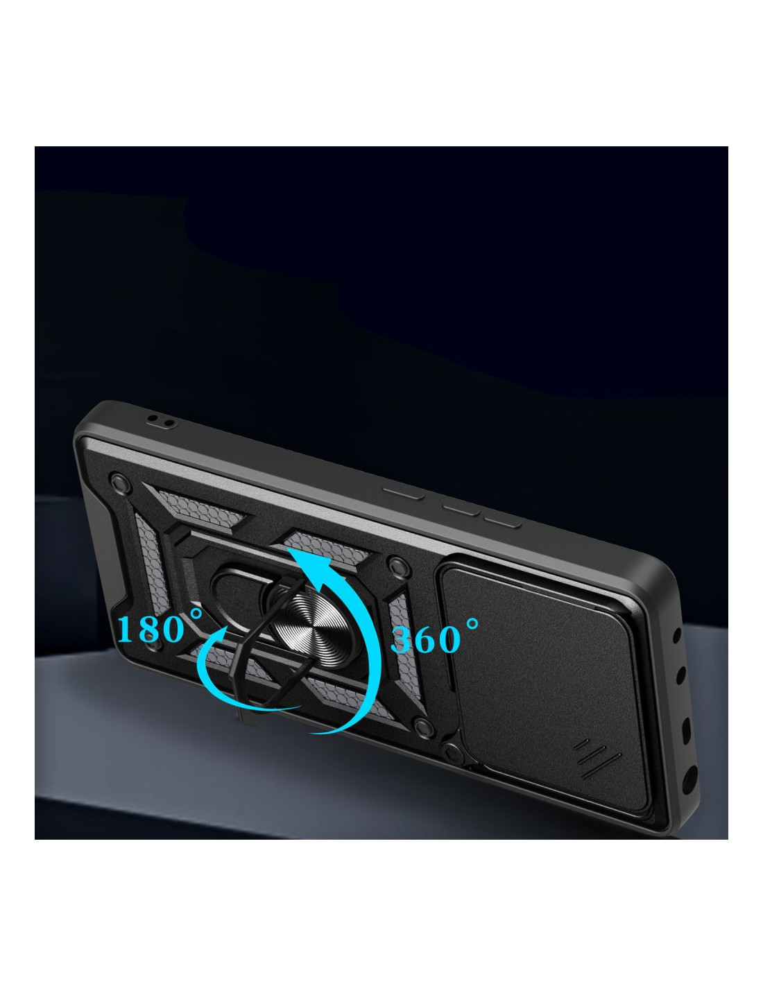 „Camshield Pro“ šarvuotas dėklas puikiai apsaugo visą jūsų įrenginį nuo kritimų ir įbrėžimų. Dėkle sujungti aukštos kokybės TPU ir PC komponentai. Lankstus ir smūgius sugeriantis poliuretanas bei patvarus, atsparus dilimui polikarbonatas sukuria patikimą hibridinę apsaugą. Įrengtas paprastu ir patogiu slankikliu , jį galima uždaryti bet kuriuo metu. Praktiškas dangtelis apsaugo objektyvą nuo netikėtų pažeidimų. 360 laipsnių kampu besisukantis žiedas puikiai tinka kaip stovas žiūrint filmus, pirštų laikiklis saugiam telefono laikymui ar net kaip magnetinis automobilinis laikiklis.