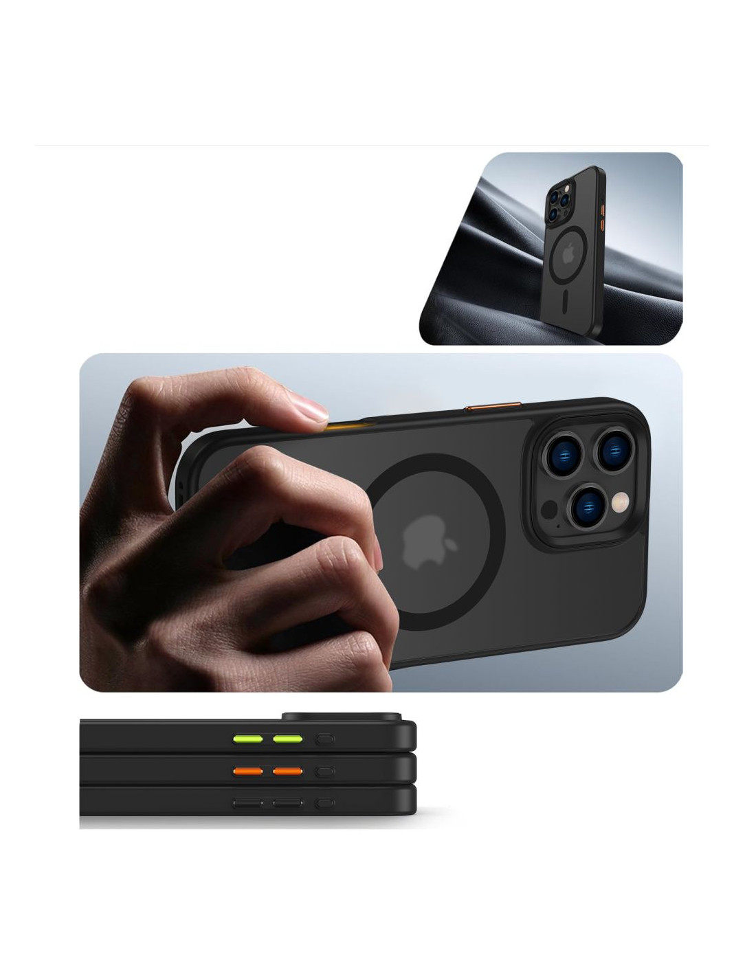 „iPhone 16 Pro“ dėklas su „MagMat Magsafe“ mygtukų dangteliais – matinės juodos spalvos