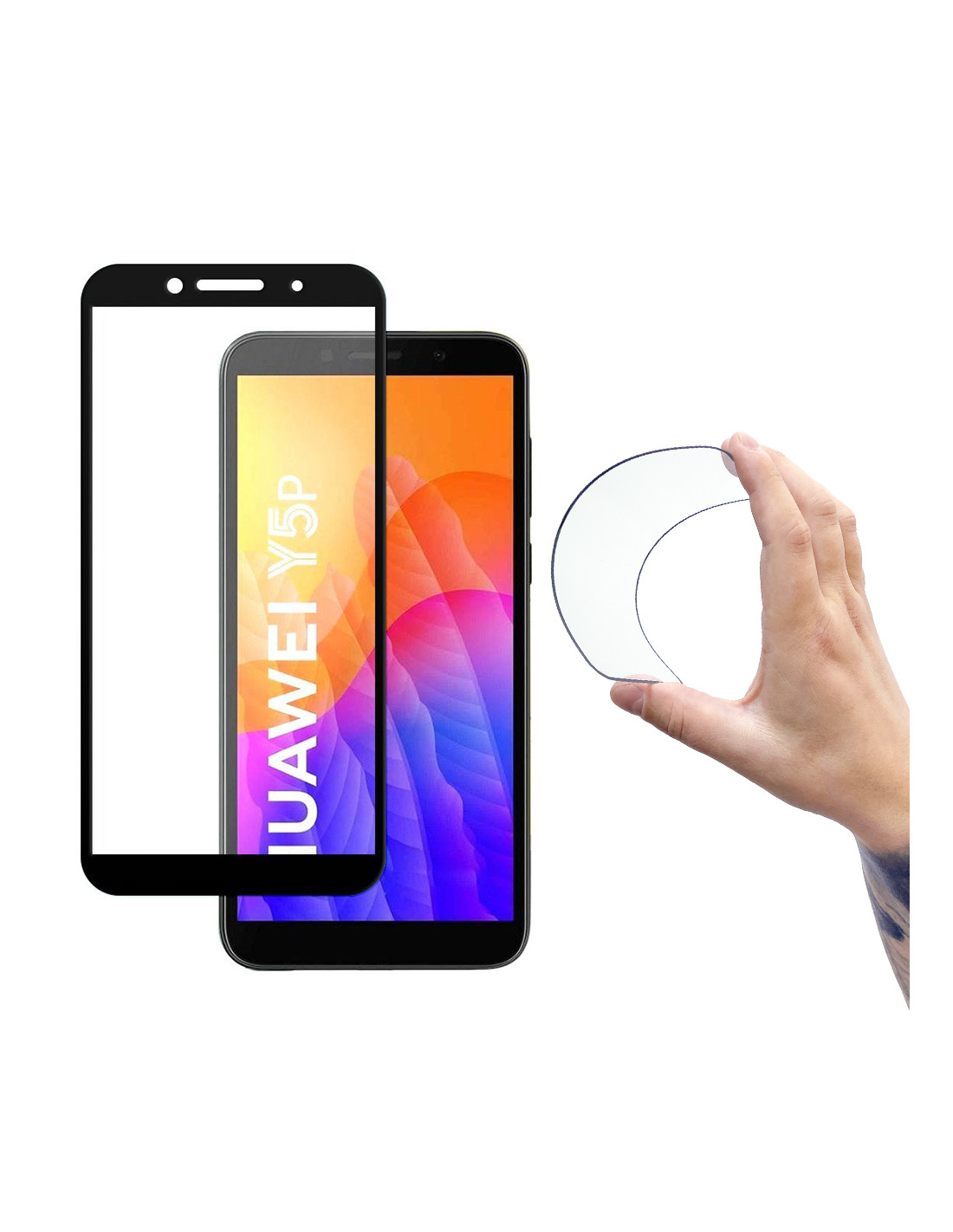 Grūdinto stiklo plėvelė su rėmeliu, skirta Huawei Y5p Full Cover Flexi Nano - juoda