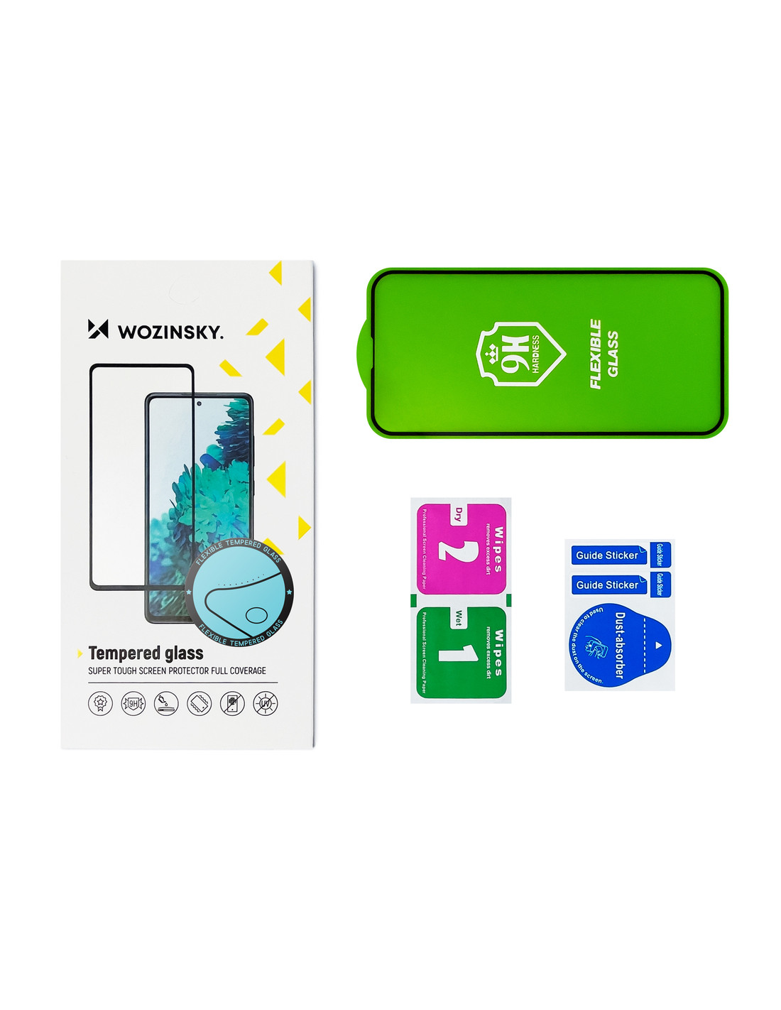 „Full Cover Flexi“ – tai hibridinė grūdinto stiklo/stiklo plėvelė iš žinomos „Wozinsky“ kompanijos. Ši aukštos kokybės ekrano apsauga sujungia tvirtą patvarumą ir išskirtinį lankstumą. Ji turi rėmelį, kuris geriau dera prie ekrano spalvos. Priedą sudaro keli sluoksniai, įskaitant stiklo pagrindą ir PET dangą. Ši konstrukcija neleidžia apsaugai subyrėti po įtrūkimo. Ji užtikrina puikią ekrano apsaugą nepakenkiant naudotojo patogumui. Itin plona, jūs lengvai pamiršite, kad ji yra jūsų telefone. Be to, ji yra labai atspari įbrėžimams, pirštų atspaudams ir kitiems dėmėms. Ji neturi įtakos ekrano jautrumui ir neiškreipia rodomo vaizdo. Tvirtoje, elegantiškoje pakuotėje yra pati ekrano apsauga, ekrano valymo šluosčių rinkinys ir dulkių valymo lipdukas.