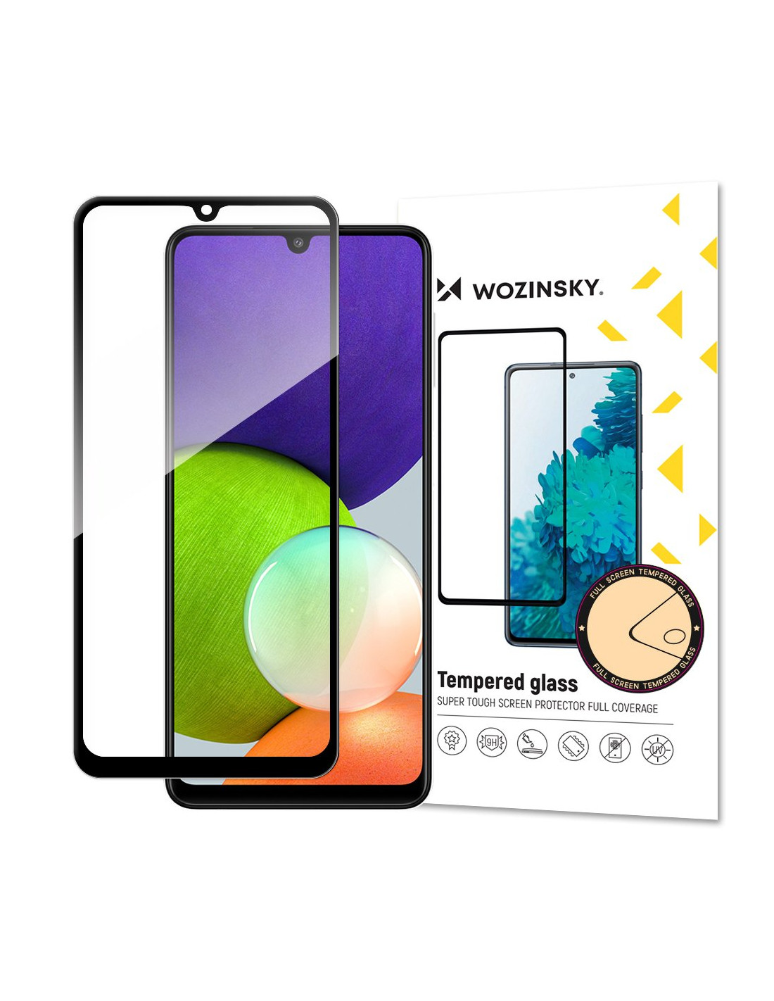 Pilnai dengiantis grūdintas stiklas su rėmeliu, skirtas „Samsung Galaxy A22 4G“, suderinamas su dėklu - juodas