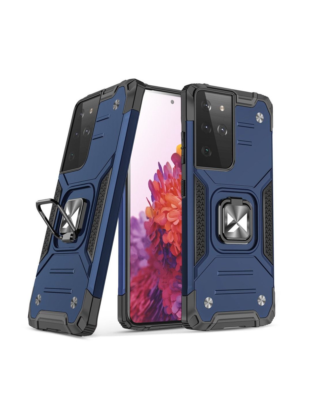 Šarvuotas hibridinis dėklas su magnetiniu laikikliu, skirtas „Samsung Galaxy S22 Ultra Ring Armor“ – mėlynas