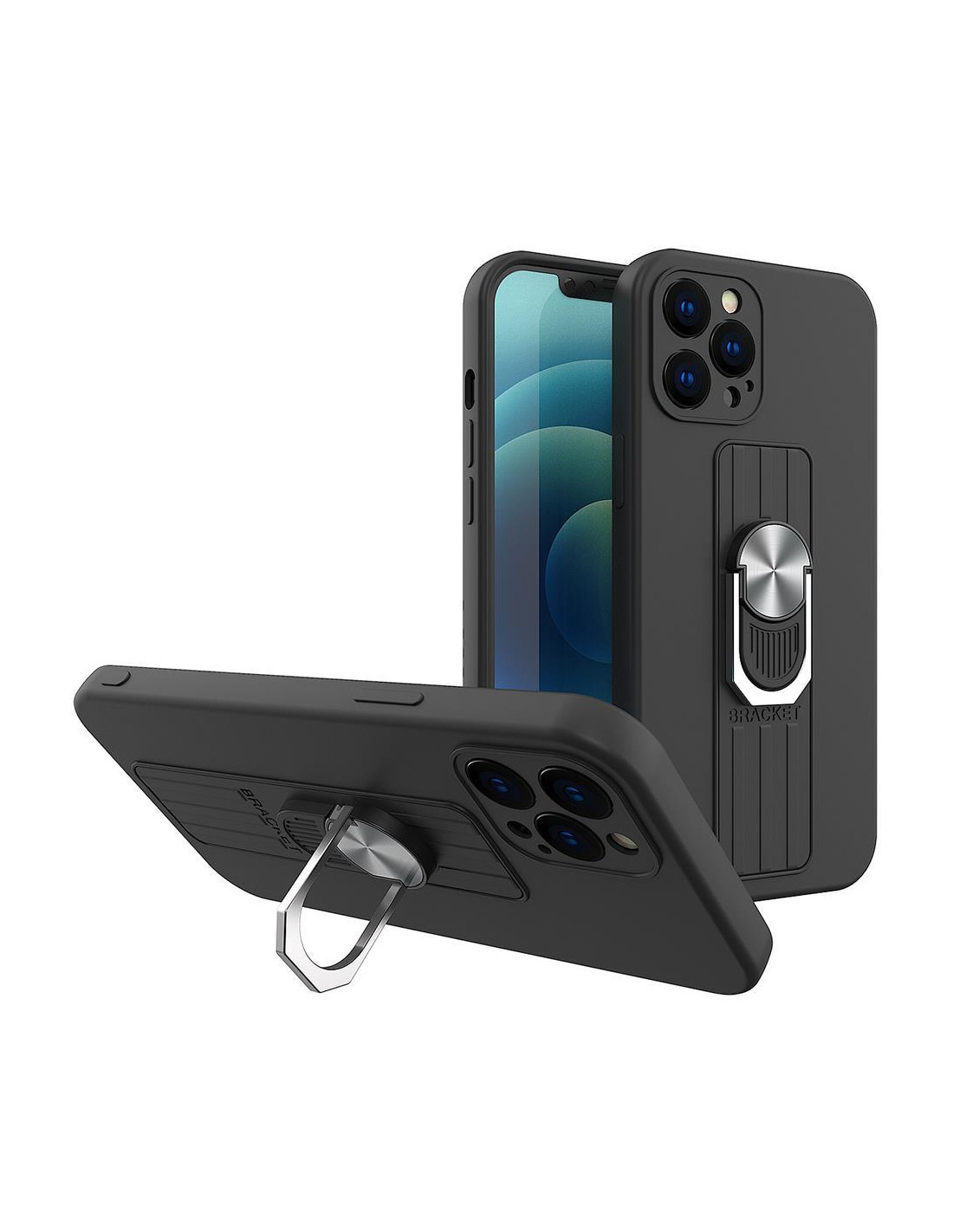 Silikoninis dėklas su piršto žiedu ir stovu, skirtas „Xiaomi Poco M4 Pro 5G“ žiediniam dėklui - juodas