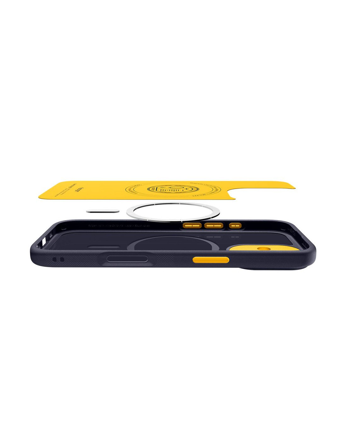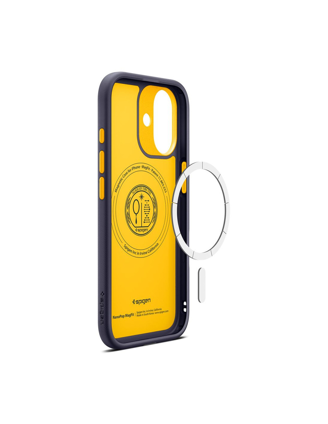 Dviejų spalvų „Spigen Nano Pop MagSafe“ – išskirtinai stilingas dėklas, išsiskiriantis ne tik dizainerio išvaizda, bet ir aukštu apsaugos lygiu. Minkštas ir patvarus poliuretano dėklas puikiai apsaugo nuo įbrėžimų ir pirštų atspaudų, o vidinėje pusėje yra apsauginis raštas, kuris išsklaido smūgius. Be to, gamintojas sutvirtino kampus naudodamas oro erdvės technologiją, kad apsaugotų įrenginį kritimo atveju. Spalvingas rėmelis aplink kamerą iškelia objektyvą virš paviršiaus, užtikrindamas apsaugą nuo kritimų ir įbrėžimų, taip pat suteikia stilingą išvaizdą. Lengvas ir plonas dizainas leidžia lengvai naudoti „Nano Pop“ kasdien, o matinė apdaila užtikrina saugų sukibimą. Dėkle yra žiedas, suderinamas su belaidžiu „MagSafe“ technologija. Magnetinis žiedas užtikrina maksimalų įkrovimo efektyvumą ir greitą bei paprastą prijungimą prie visų „MagSafe“ palaikančių priedų.
