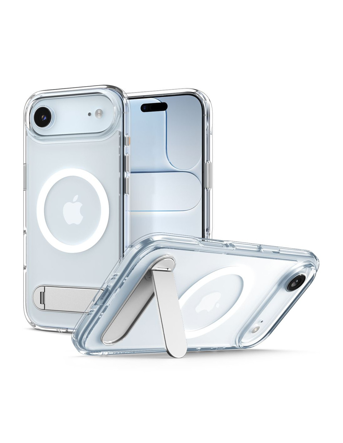 „iPhone 17 Air Ultra Hybrid S“ apsauginis „MagSafe“ dėklas su stovu – skaidrus ir baltas