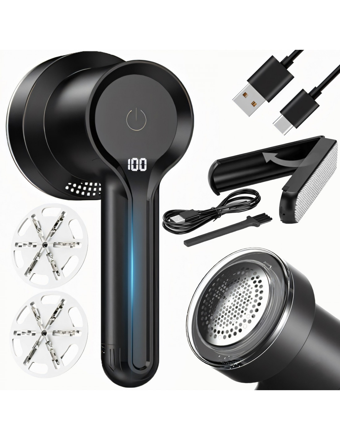 „Retoo ER1230“ audinių skustuvas yra galingas ir praktiškas prietaisas pūkams šalinti iš drabužių ir audinių. Įrengtas 5 W varikliu ir 3 greičių nustatymais (6500/7500/8500 aps./min.), jis efektyviai susidoroja net su sunkiai įveikiamais pūkeliais. Integruotas LCD ekranas rodo akumuliatoriaus lygį ir pasirinktą veikimo režimą. Prietaisas turi didelės talpos 1200 mAh bateriją , kuri užtikrina iki 540 minučių veikimo laiką, o įkraunamas per USB-C prievadą. Skustuvas pagamintas iš patvaraus ABS plastiko ir turi saugos sistemą , kuri automatiškai išjungia variklį, kai nuimamas peiliukų dangtelis.