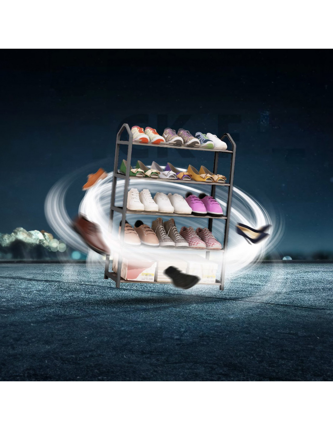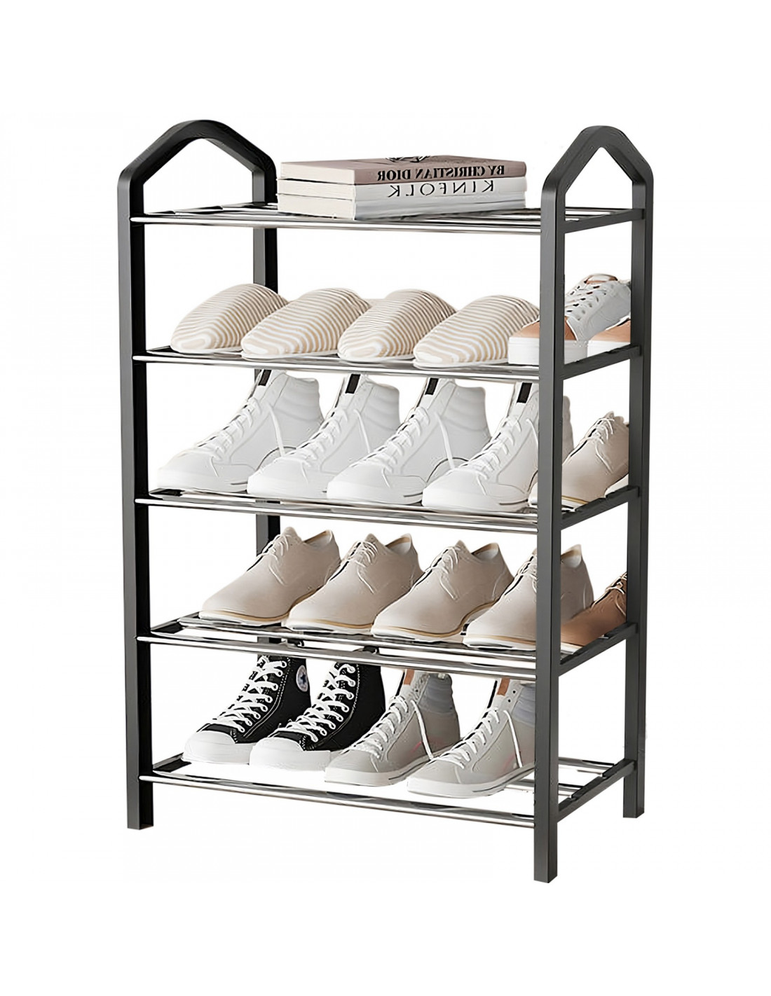 Ši praktiška ir kompaktiška penkių pakopų batų lentyna – puikus sprendimas avalynei laikyti koridoriuose, spintose, rūsiuose ar laiptinėse. Joje telpa iki 15 porų batų, o užimama minimaliai vietos. Lentynos konstrukcija leidžia ją greitai surinkti ir išardyti be įrankių, o lengva ir tvirta konstrukcija leidžia ją lengvai perkelti ar transportuoti. Lentyna pagaminta iš metalo ir patvaraus plastiko , užtikrinančio jos stabilumą ir ilgaamžiškumą ilgus metus.