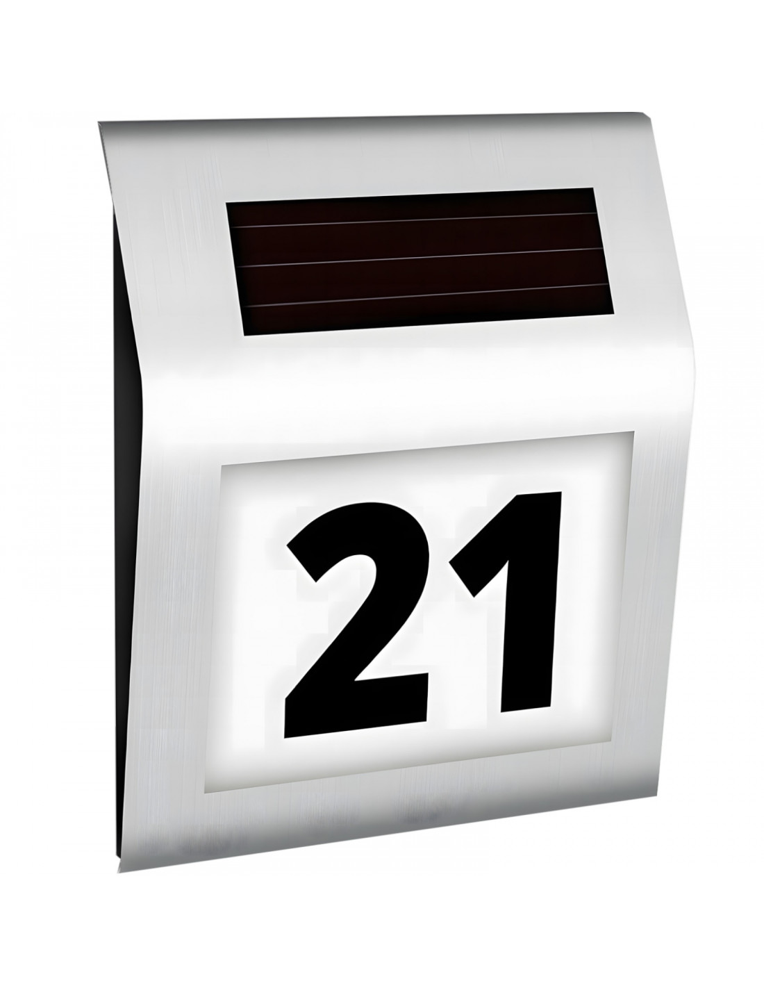Šis šviečiantis namo numeris su saulės energija varoma LED lempute yra praktiškas ir estetiškas sprendimas, leidžiantis aiškiai pažymėti savo nuosavybę sutemus. Pagamintas iš patvaraus nerūdijančio plieno, šviestuvas turi saulės bateriją ir prieblandos jutiklį, todėl jis veikia automatiškai, nereikalaujant išorinio maitinimo šaltinio. Dėl aukštos kokybės konstrukcijos ir IP44 atsparumo vandeniui klasės jis puikiai tinka naudoti lauke ištisus metus.
