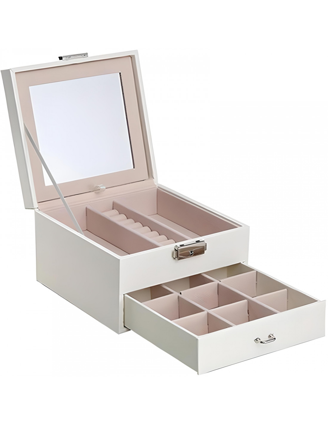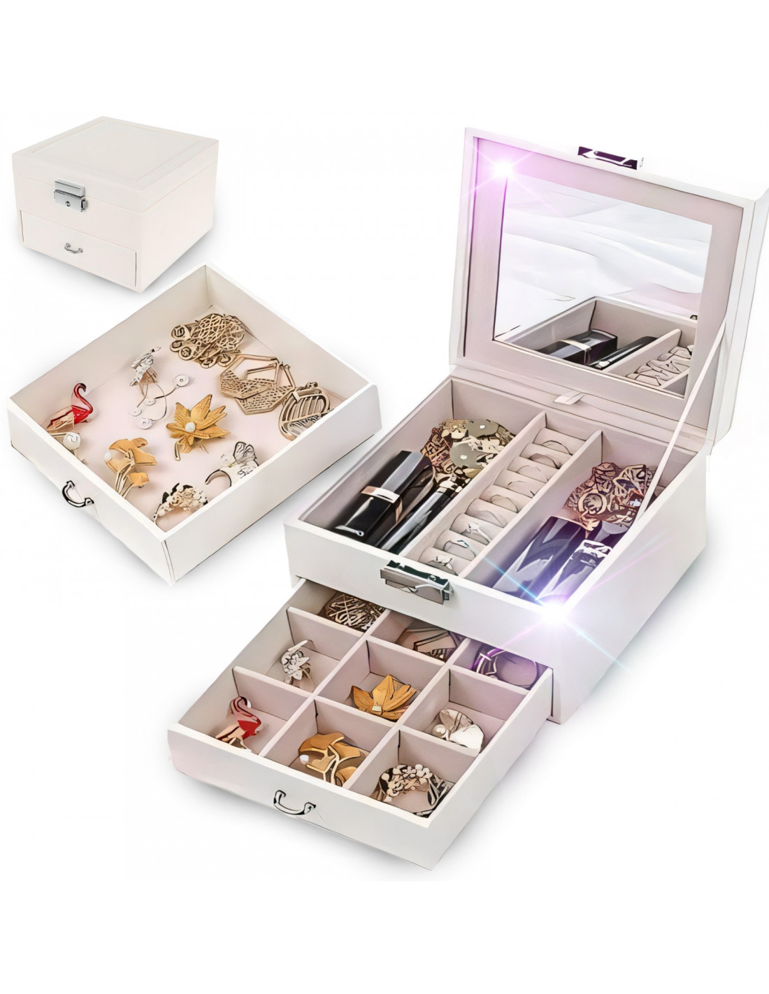 Ši elegantiška ir praktiška „Retoo“ papuošalų dėžutė – puikus sprendimas auskarams, žiedams, laikrodžiams ir kitiems aksesuarams laikyti. Pagaminta iš aukštos kokybės PU odos, ji turi pakreipiamą veidrodėlį, stumdomą stalčių ir rakto užrakinimo mechanizmą, kad jūsų laikomi daiktai būtų saugūs. Ji puikiai tinka tiek ant tualetinio staliuko, tiek kelionėms. Dėl modernaus dizaino ji yra puiki dovana bet kuriai moteriai.