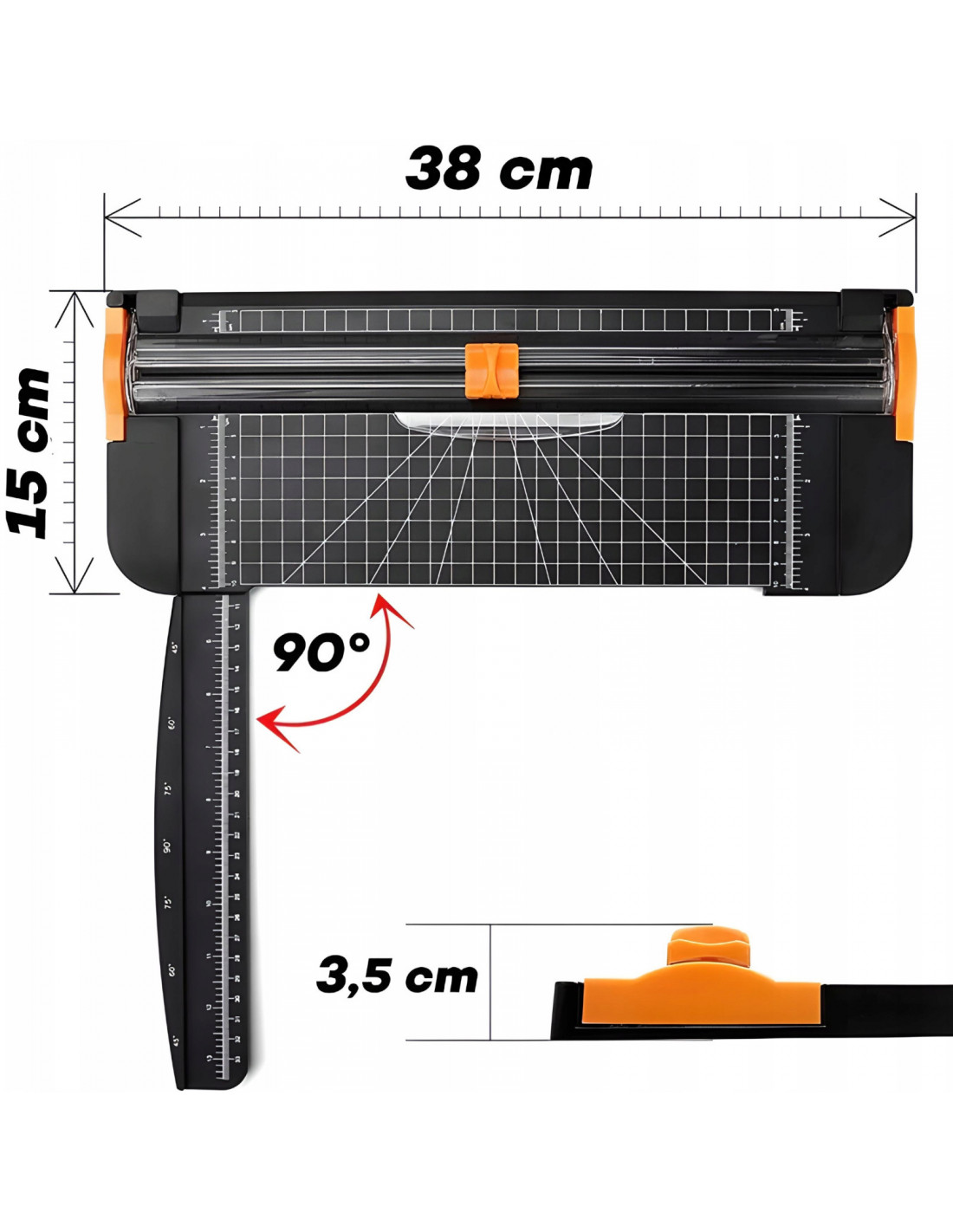 • - Tikslus popieriaus pjovimas kampu nuo 45° iki 90°;